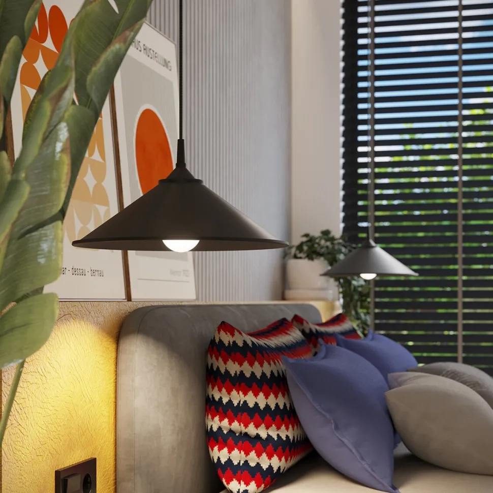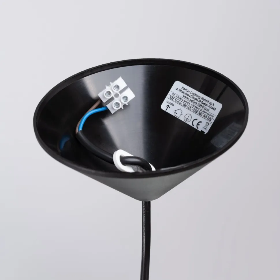 - Stożkowy kształt klosza zapewnia równomierne rozproszenie światła