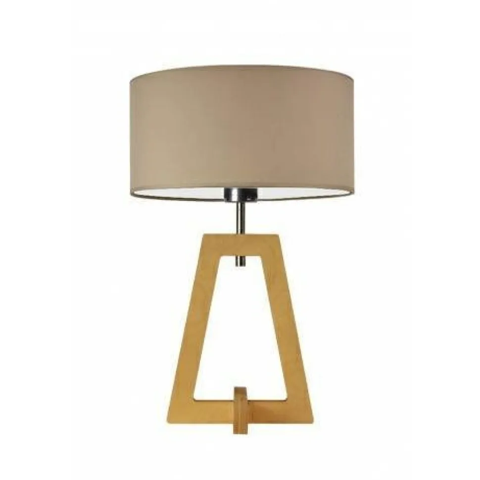 Lampka Cliowyróżnia się ciekawą konstrukcją, tworzoną przezpodstawę w kształcie trapezui tkaninowy abażur.