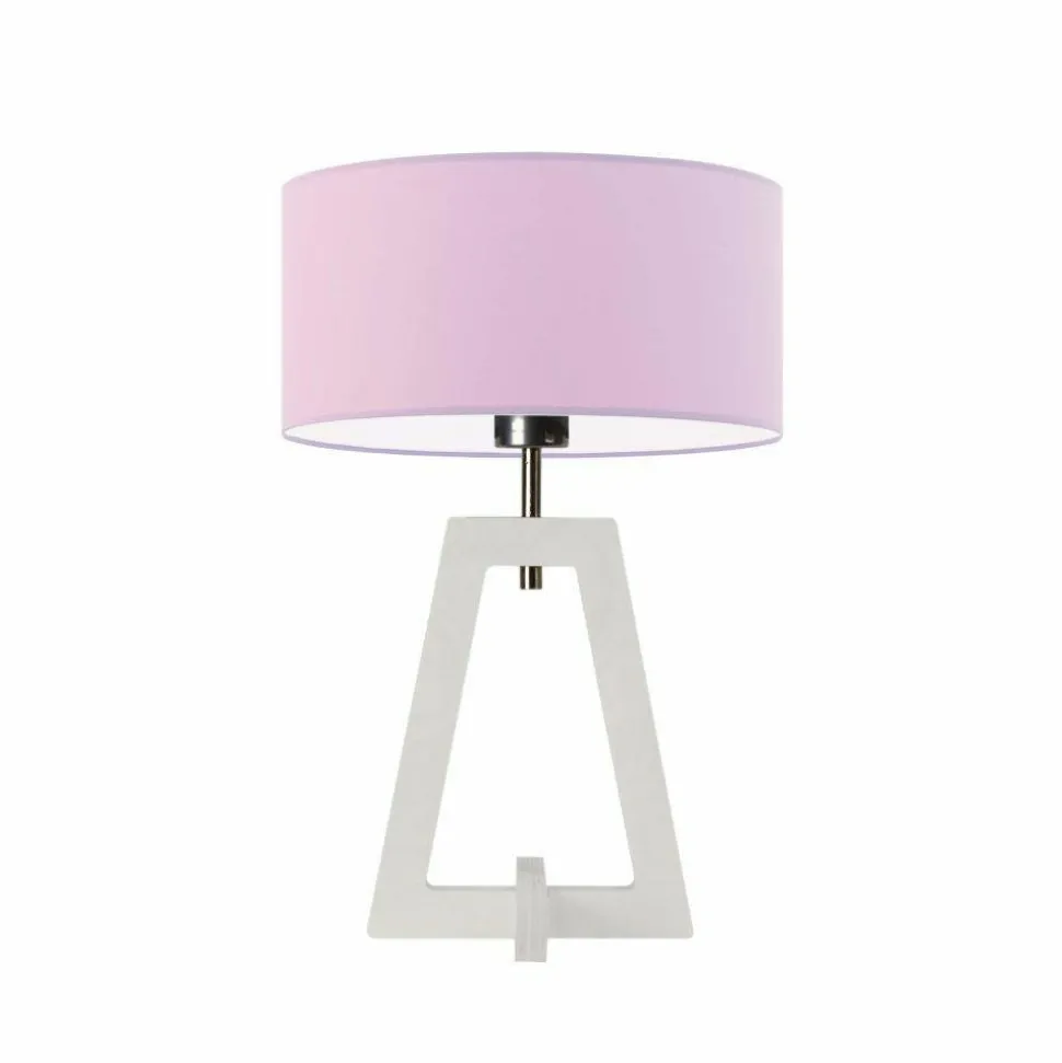 Lampka Cliowyróżnia się ciekawą konstrukcją, tworzoną przezpodstawę w kształcie trapezui tkaninowy abażur.