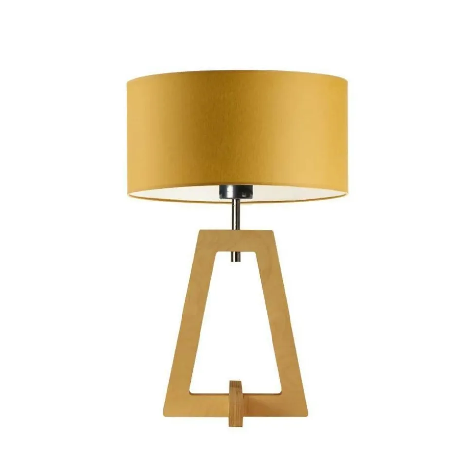 Lampka Cliowyróżnia się ciekawą konstrukcją, tworzoną przezpodstawę w kształcie trapezui tkaninowy abażur.
