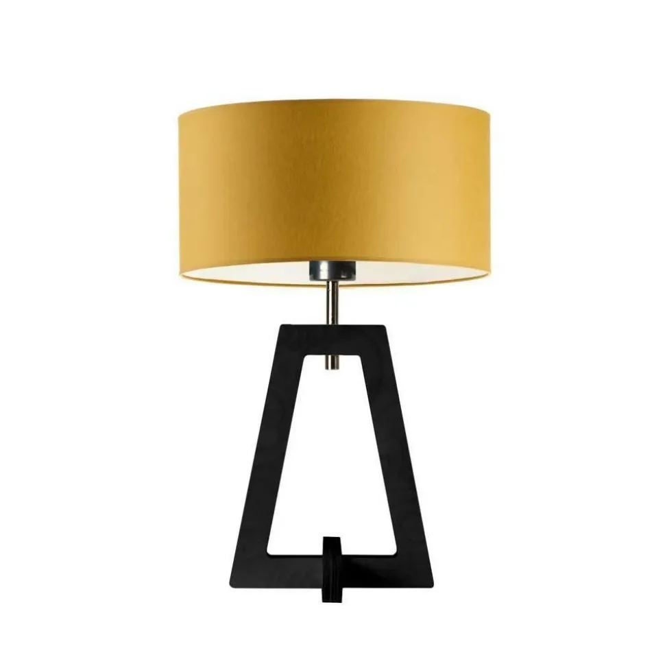 Lampa Cliowyróżnia się ciekawą konstrukcją, tworzoną przezpodstawę w kształcie trapezui tkaninowy abażur.