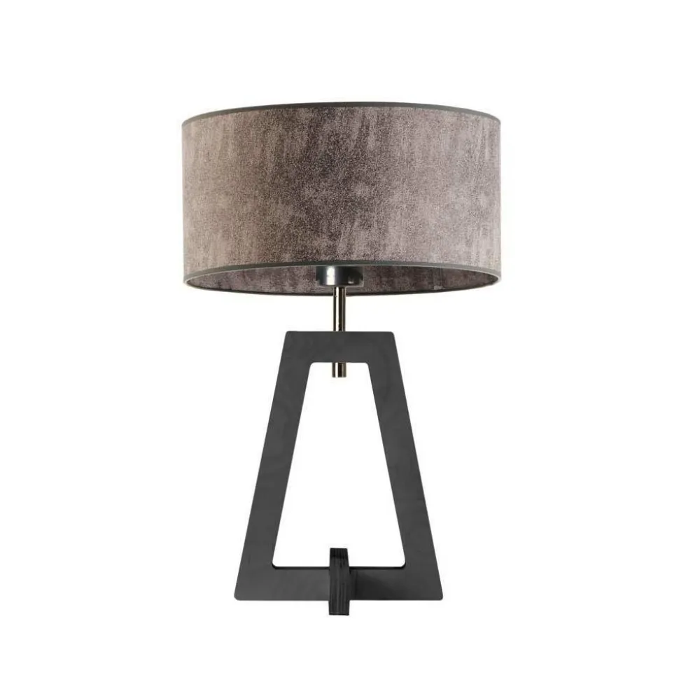 Lampka Clio wyróżnia się ciekawą konstrukcją, tworzoną przezpodstawę w kształcie trapezui tkaninowy abażur.