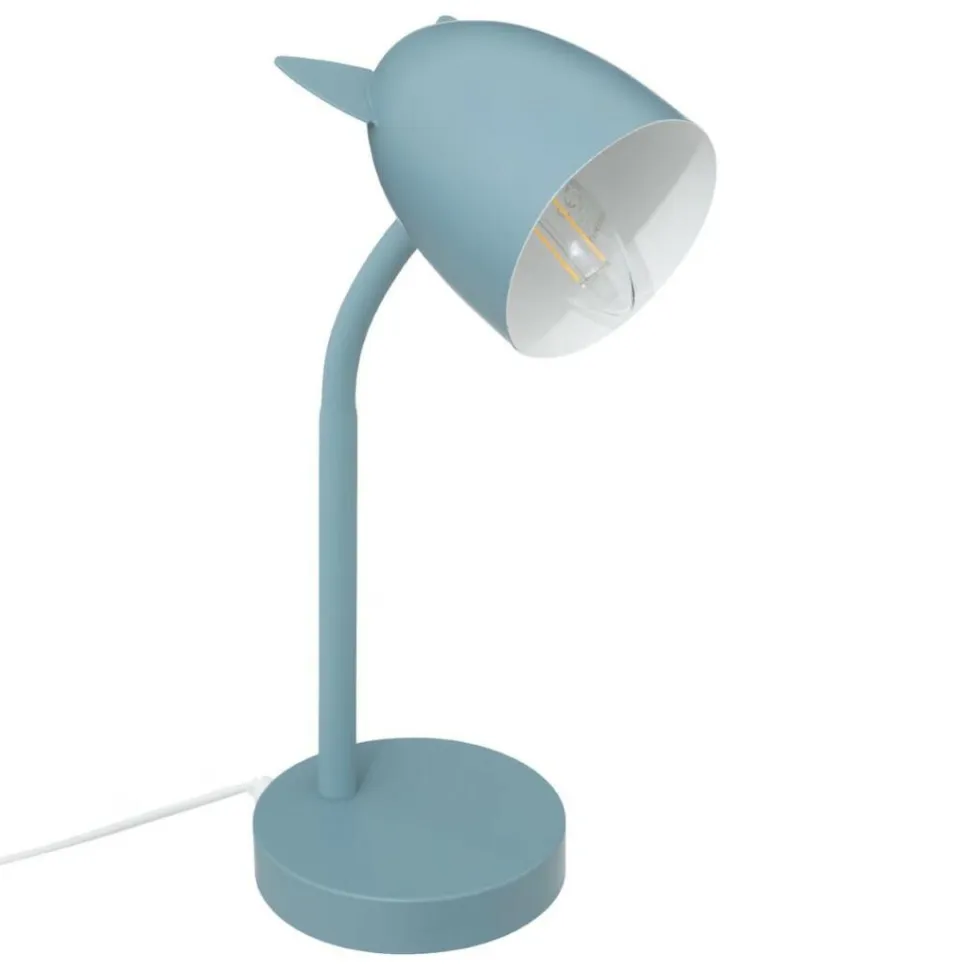 Lampka Ears w kolorzeniebieskim to doskonałe oświetlenie, które pasuje do pokoju dziecięcego lub nastolatka. Jejwyjątkowy kształt z kloszem ozdobionym uszaminadaje uroku i przytulności każdemu wnętrzu.Regulowany kąt klosza pozwala dostosować oświetlenie do konkretnych potrzeb, a ledowa żarówka zapewnia delikatne, miłe dla oka światło idealne do użytku przy biurku.