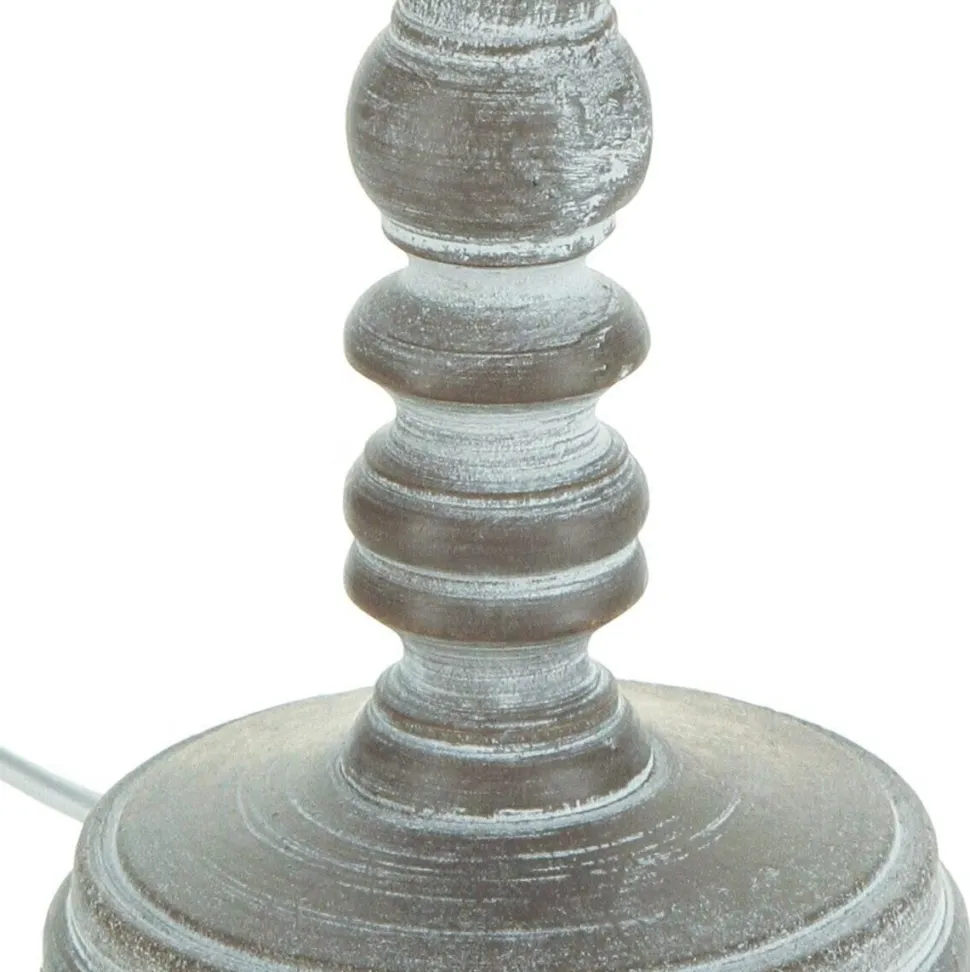 - Drewniana podstawa w poprzecieranych odcieniach szarości dodaje lampce naturalnego i vintage’owego charakteru.