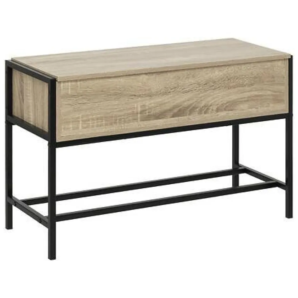Mebel wykonany jest z płyty MDF i metalu, co gwarantuje jego trwałość i odporność na uszkodzenia. Okleina imitująca słoje drewna nadaje ławce naturalny wygląd, który doskonale wpisze się w każde wnętrze. Siedzisko ławki wykonane jest z płyty MDF, a podstawa z metalu, co zapewnia stabilność i komfort użytkowania.