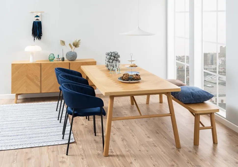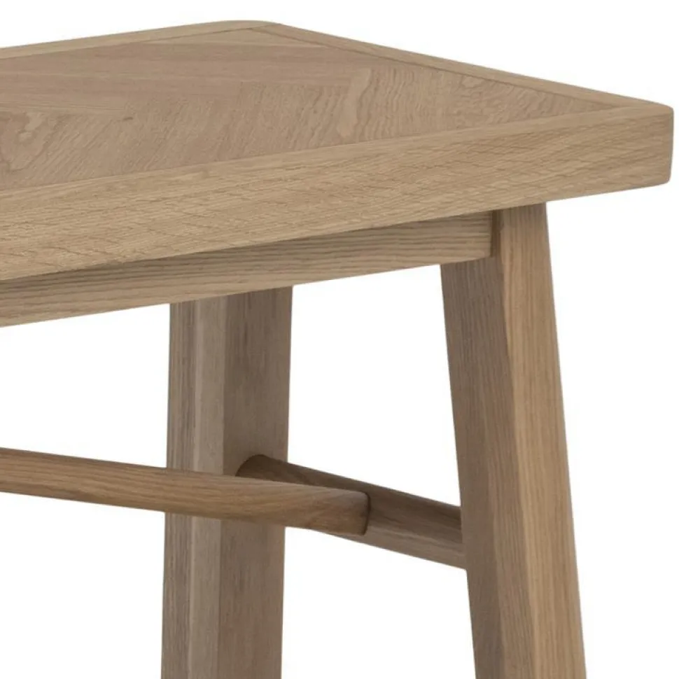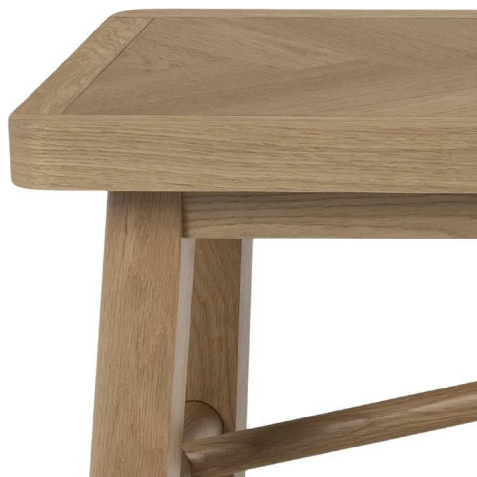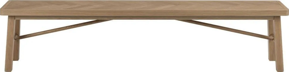 Ławka Galway to piękny, minimalistyczny mebel, który doda elegancji każdemu pomieszczeniu w Twoim domu. Naturalna okleina dębowao stylowym wzorze jodełki ławka doskonale sprawdzi się we wnętrzach w stylu skandynawskim lub boho. Posiada długie, prostokątne siedzisko, które spoczywa na czterech drewnianych nogach połączonych dodatkowymi wspornikami.