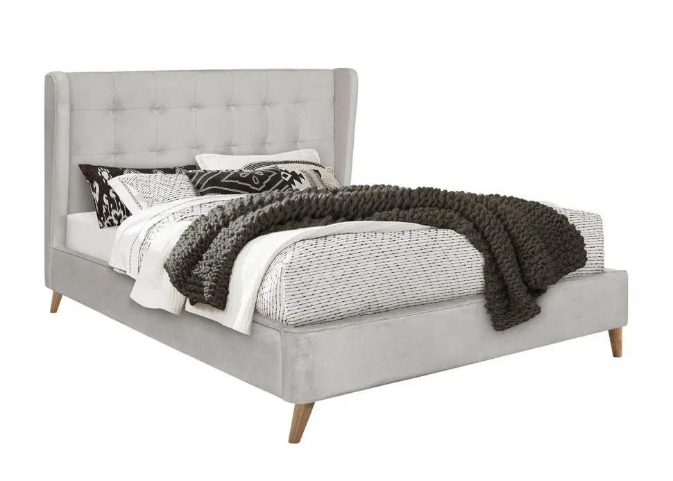 Design łóżka Flikez łączy nowoczesną estetykę z klasyczną elegancją. Miękka welwetowa tapicerka jest nie tylko przyjemna w dotyku, ale również łatwa w utrzymaniu czystości. Wysokie wezgłowie dodaje łóżku charakteru i oferuje dodatkowe wsparcie podczas siedzenia lub czytania w łóżku, co sprawia, że staje się ono miejscem nie tylko do spania, ale i relaksu. Dzięki temu, łóżko sprzedawane bez materaca pozwala na indywidualne dopasowanie odpowiedniego materaca według własnych preferencji, co zwiększa komfort użytkowania.