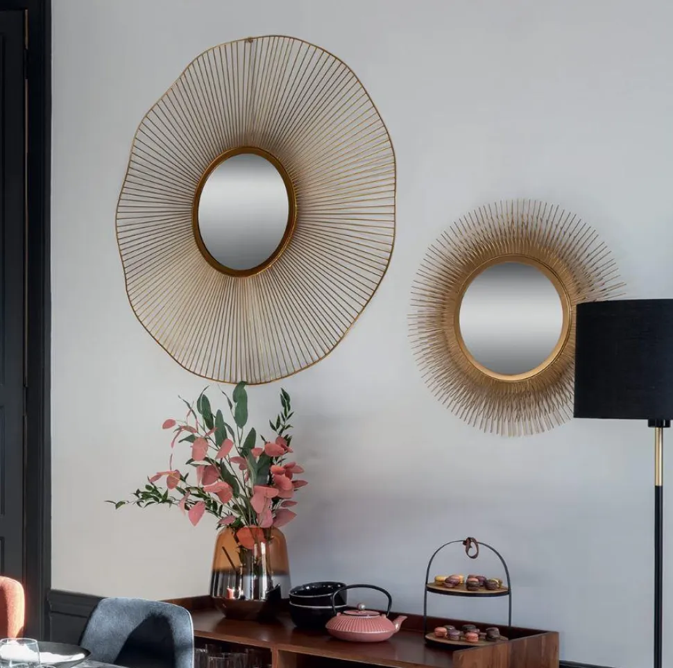 Wystrój wnętrza polega na szukaniu czegoś wyjątkowego — chodzi o wybór dodatków, które subtelnie podkreślą Twoją przestrzeń i nadadzą jej blasku. Jeżeli chcesz osiągnąć taki efekt nie szukaj dalej niż to eleganckie lustro Metal Soleil, które jest idealnym sposobem na wzbogacenie wnętrza! To złote lustro ma lakierowaną metalową ramę, która wygląda jak promienie słońca migoczące w świetle — doda eleganckiego akcentu zwykłej, pustej ścianie w Twoim przedpokoju, przekształcając ją w coś niezwykłego.
