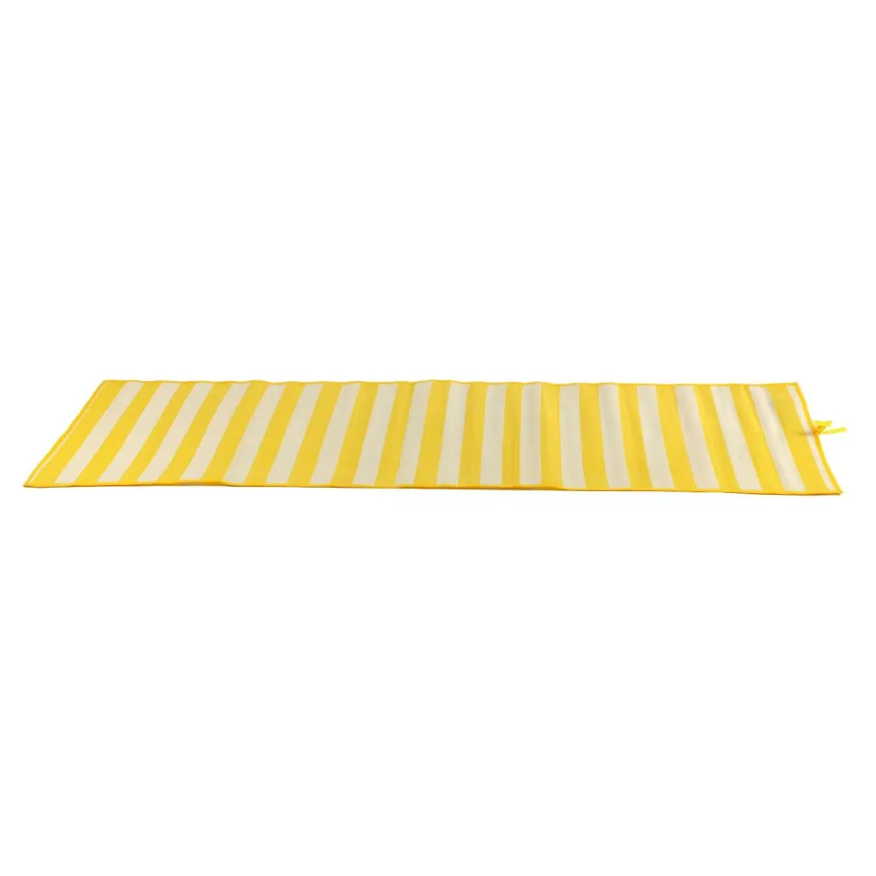 Praktyczny rozmiar maty oraz możliwość łatwego zwinięcia sprawiają, że jest ona łatwa w przenoszeniu i idealnie nadaje się na plażowe eskapady. Dostępna w trzech żywych kolorach – zielonym, niebieskim i żółtym – pozwala na wybór wariantu odpowiadającego naszym preferencjom estetycznym.