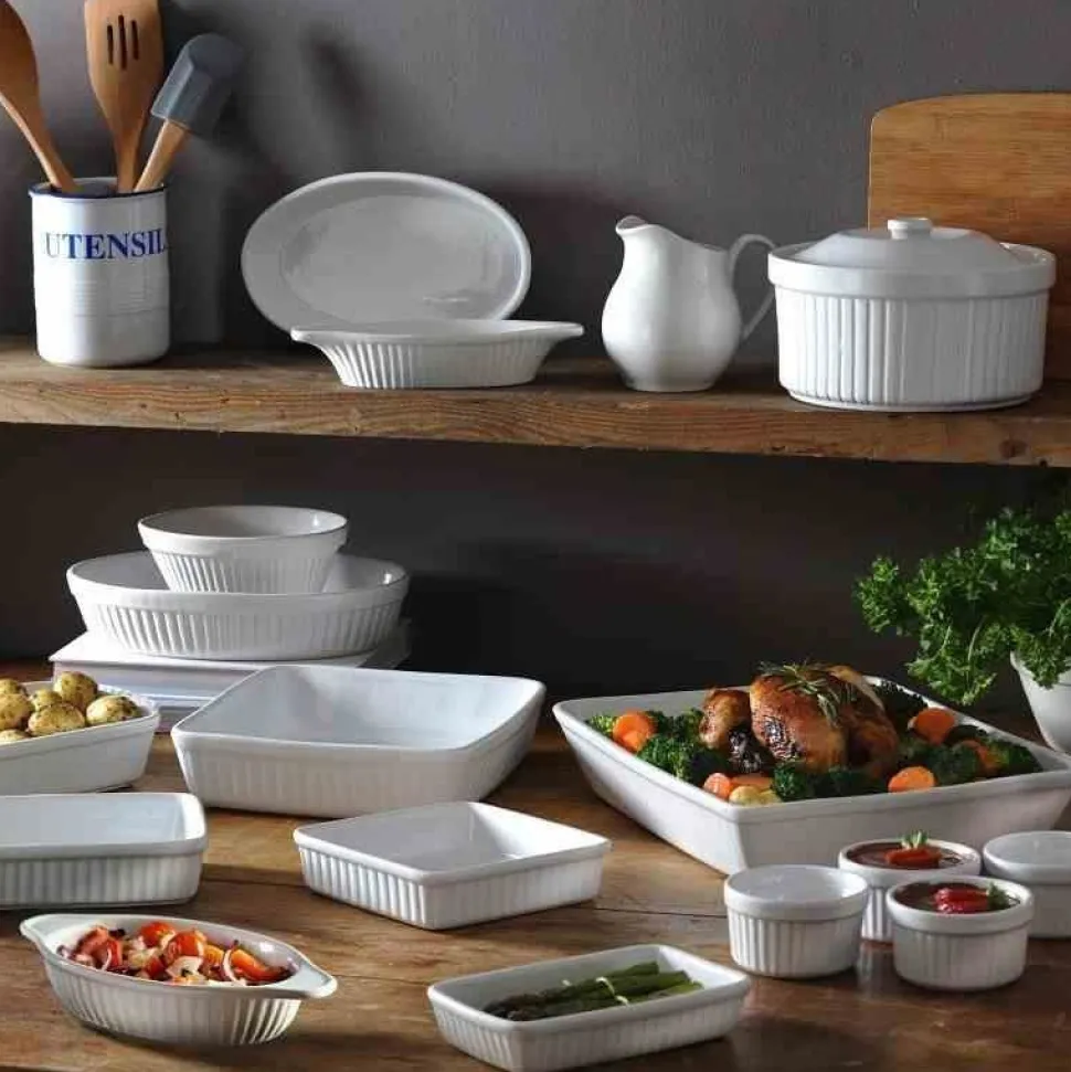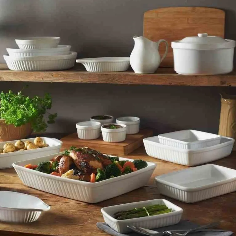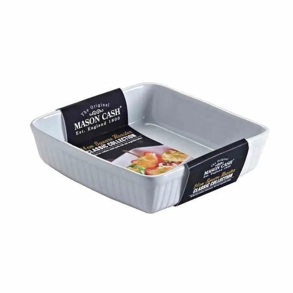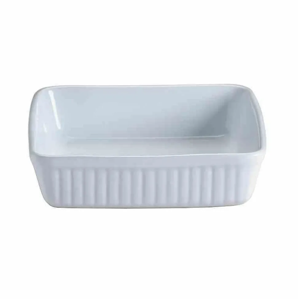 Klasyczne prostokątne naczynie do zapiekania o boku 25 cm jest wykonane z wysokiej jakości kamionki i doskonale nadaje się do serwowania ciast lub jako półmisek. Jest białe z dekoracyjnymi prążkami i może być używane w piekarniku, mikrofalówce i zamrażarce. Można je myć w zmywarce i jest idealny do użytku w domu lub w lokalach gastronomicznych.