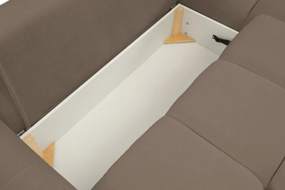 - Funkcja spania i praktyczny pojemnik na pościel zwiększają funkcjonalność narożnika.