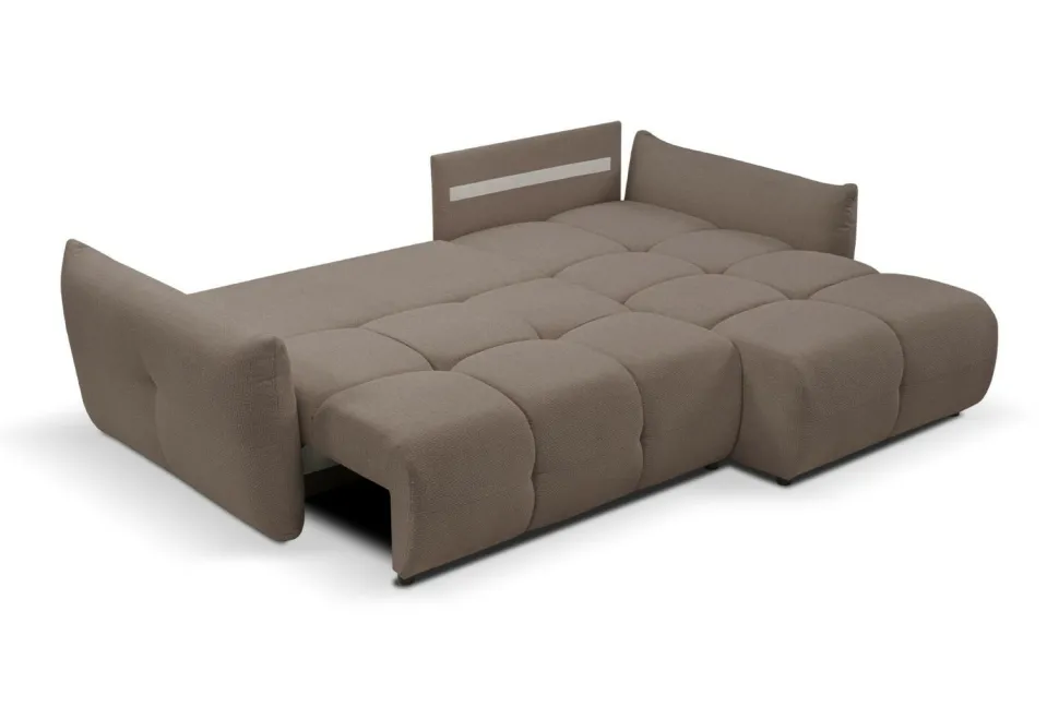 Narożnik Bode z funkcją spania prawy brązowy Nordic moka – wygoda i elegancja w jednym