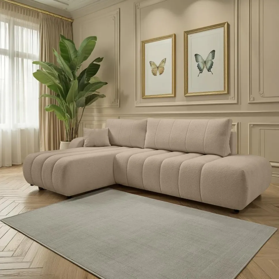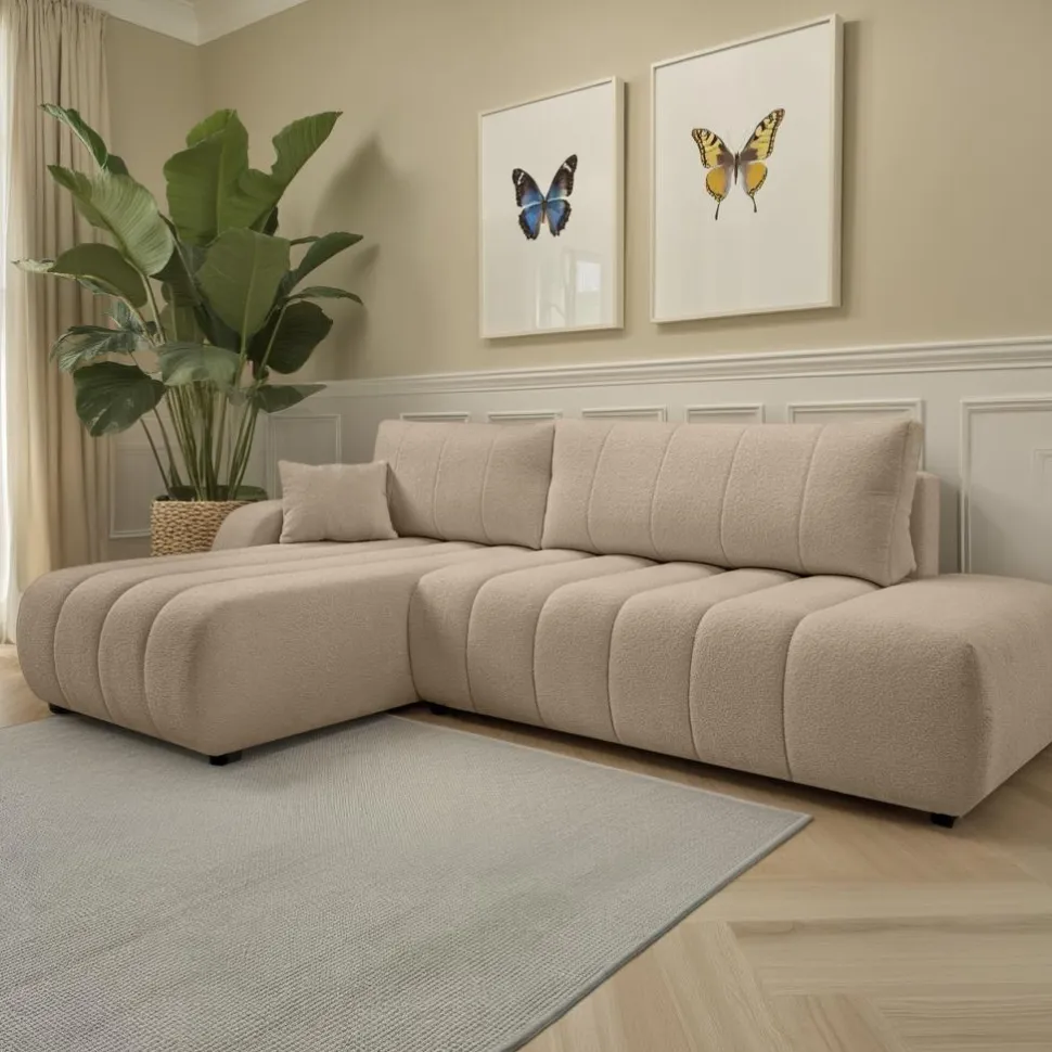 Narożnik Hobro z funkcją spania lewy beżowy Lambi 5 – Komfort i funkcjonalność