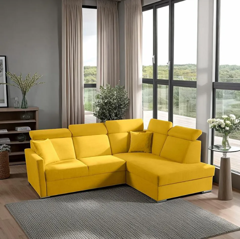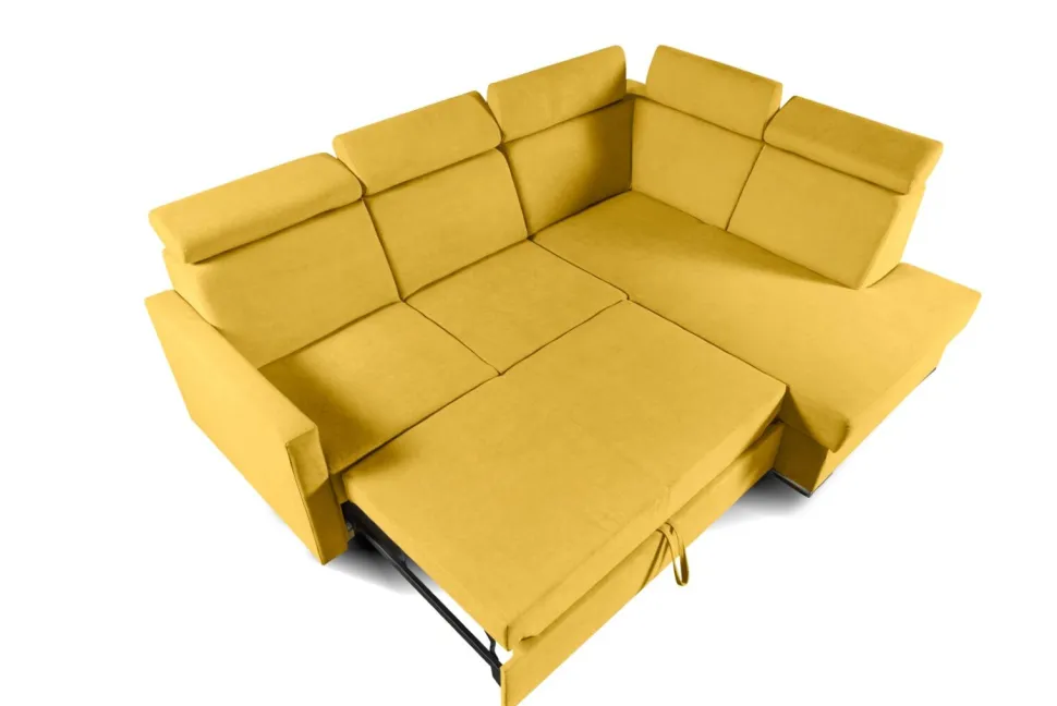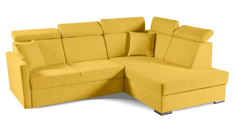 - Musztardowy kolor narożnika doda ciepła każdemu wnętrzu, a chromowane nogi – elegancji.