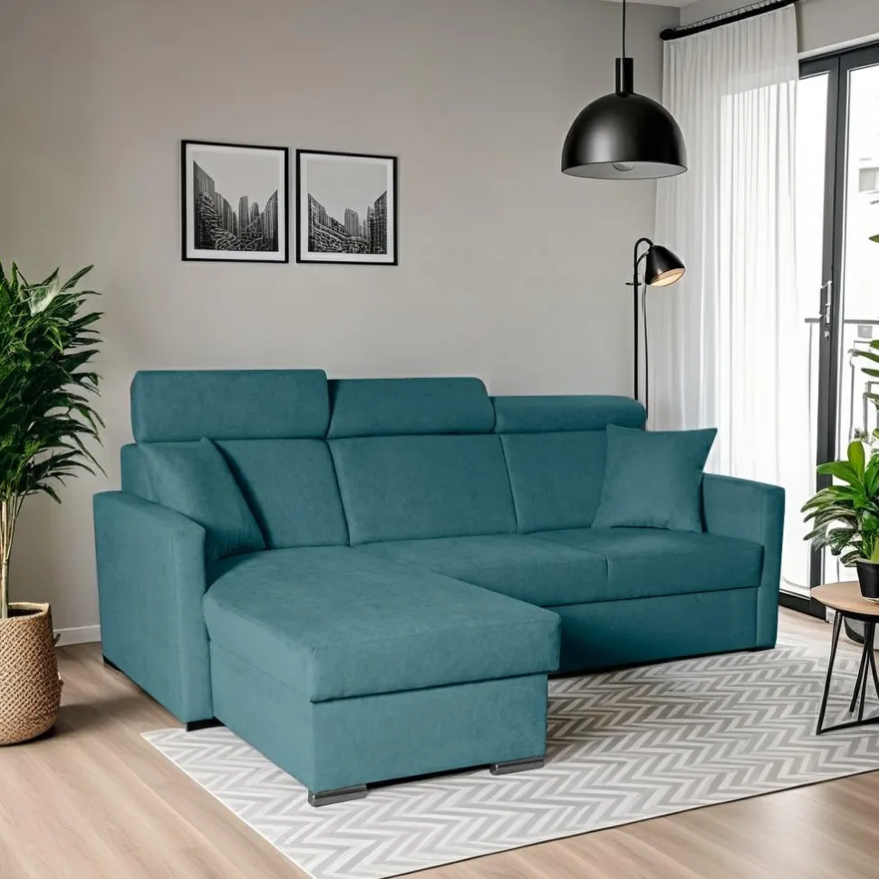 Narożnik Mils z funkcją spania morski – elegancki i funkcjonalny