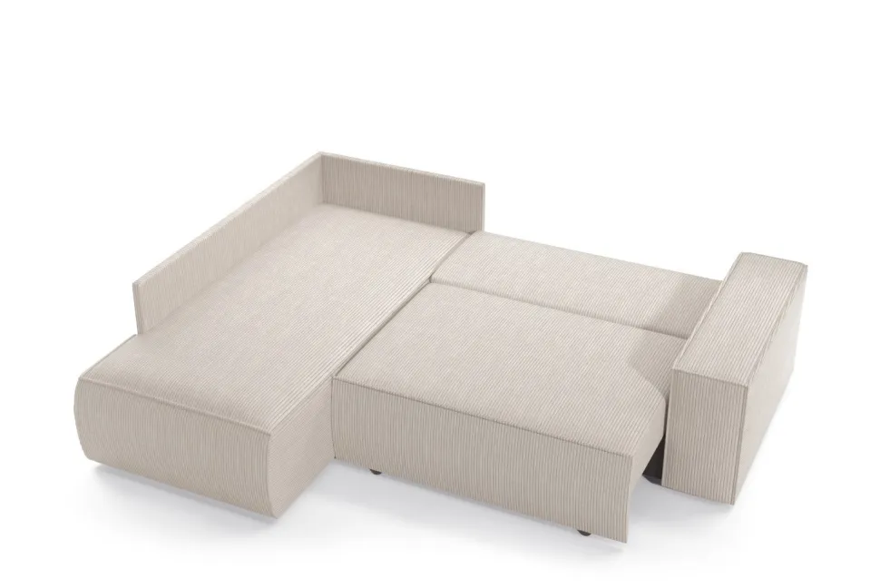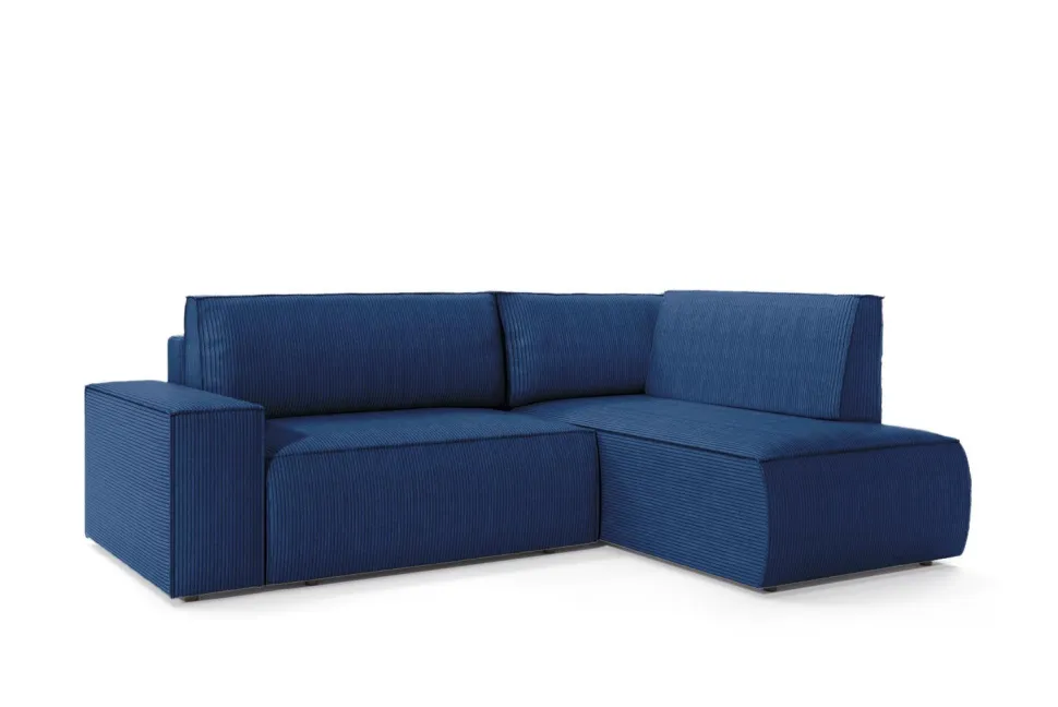 Prezentowany narożnik marki Intesi to wyjątkowe połączenie nowoczesnego designu z funkcjonalnością. Wykonany z wysokiej jakości tkaniny sztruksowej w odcieniu granatowym, idealnie wpasuje się w każde wnętrze, nadając mu wyjątkowego charakteru. Jego duża powierzchnia spania (200x135cm) zapewnia komfortowy wypoczynek, a dodatkowo wyposażony jest w pojemnik na pościel, co jest niezwykle praktyczne i pozwala na utrzymanie porządku.