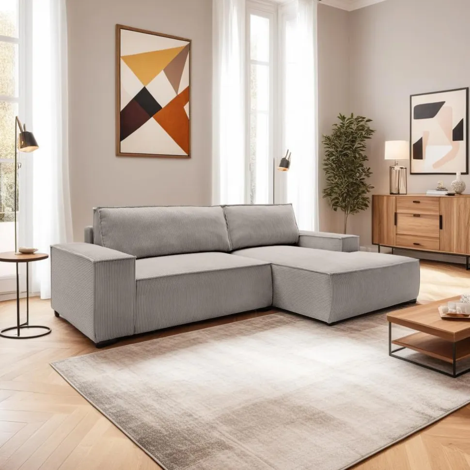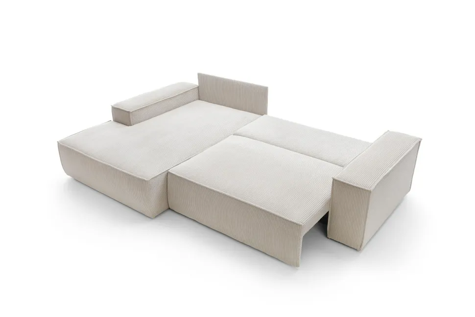 Narożnik Molde M to wyjątkowo elegancki i funkcjonalny mebel, który wprowadzi do Twojego salonu nutę luksusu. Wykonany z najwyższej jakości sztruksowej tkaniny, charakteryzuje się nie tylko niezwykłą wygodą, ale również trwałością. Poso, to materiał o dużej gramaturze 380g/m3, odporny na ścieranie (35 000 cykli) i piling (5). Dzięki temu, nawet przy intensywnym użytkowaniu, narożnik będzie prezentować się nienagannie.