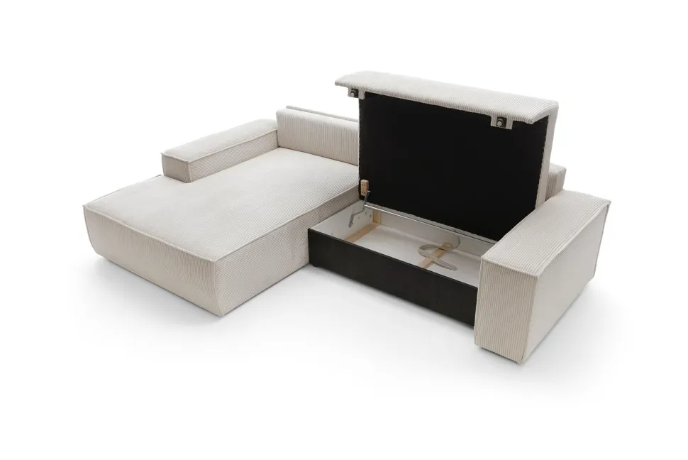 Sofa skandynawska marki Intesi to połączenie nowoczesnego designu z praktycznością. Gruby, 28-centymetrowy podłokietnik zapewnia komfort podczas czytania książki czy odpoczynku, a duży pojemnik na pościel pozwala na przechowywanie niezbędnych akcesoriów. Szezlong zakończony jest poduchą, do której można się przytulić, co dodatkowo podnosi komfort użytkowania.