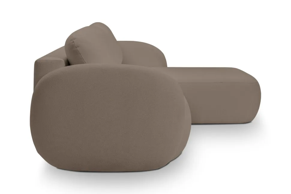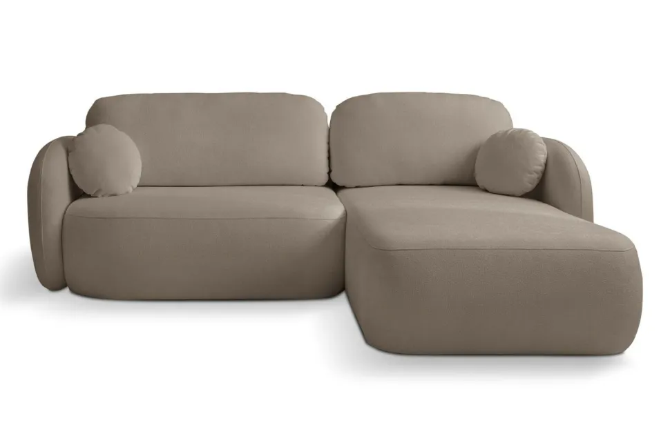 Intesi prezentuje stylowy narożnik Salby z funkcją spania prawy brązowy Sicuro 45, który łączy w sobie elegancję i funkcjonalność. Jego wyjątkowy design z zaoblonymi poduszkami i podłokietnikami świetnie komponuje się z estetyką wnętrz w stylu japandi lub boho. Dodatkowo, do zestawu dołączone są dwie okrągłe poduszki, które zwiększają komfort użytkowania, idealne do poobiednich drzemek. Narożnik Salby to nie tylko piękno, ale także praktyczność – posiada funkcję spania oraz pojemnik na pościel.