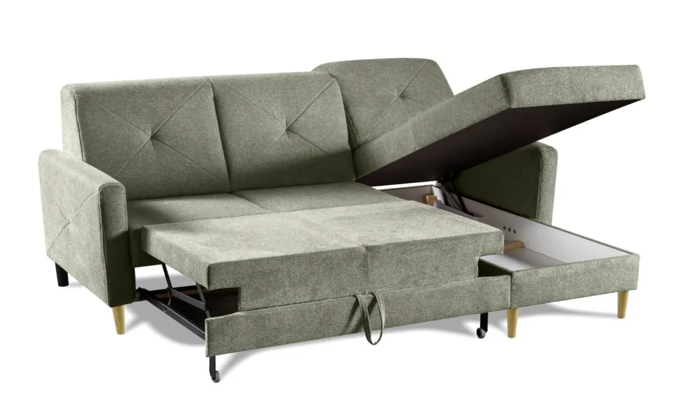 Narożnik Scandi z funkcją spania zielony Diosa 34: Idealne połączenie funkcjonalności i stylu