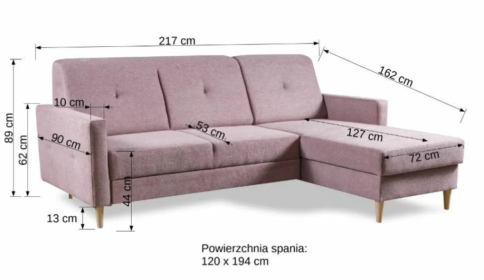 - Nogi narożnika wykonane z drewna bukowego, co gwarantuje jego trwałość i stabilność.