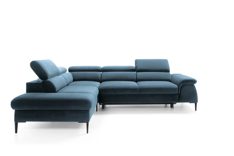 Przedstawiamy Narożnik Silvo – mebel, który z powodzeniem stanie się sercem Twojego salonu. Wyposażony w funkcję spania, stwarza dodatkowe miejsce do snu, co sprawia, że jest nie tylko praktyczny, ale i niezwykle funkcjonalny. Z ruchomymi zagłówkami i miękkimi podłokietnikami jest gwarancją komfortu podczas wspólnych seansów filmowych. Przemyślane rozwiązania, jak wysokość nóżek wynosząca 15cm, umożliwiają łatwe sprzątanie pod meblem, nawet za pomocą robota sprzątającego.