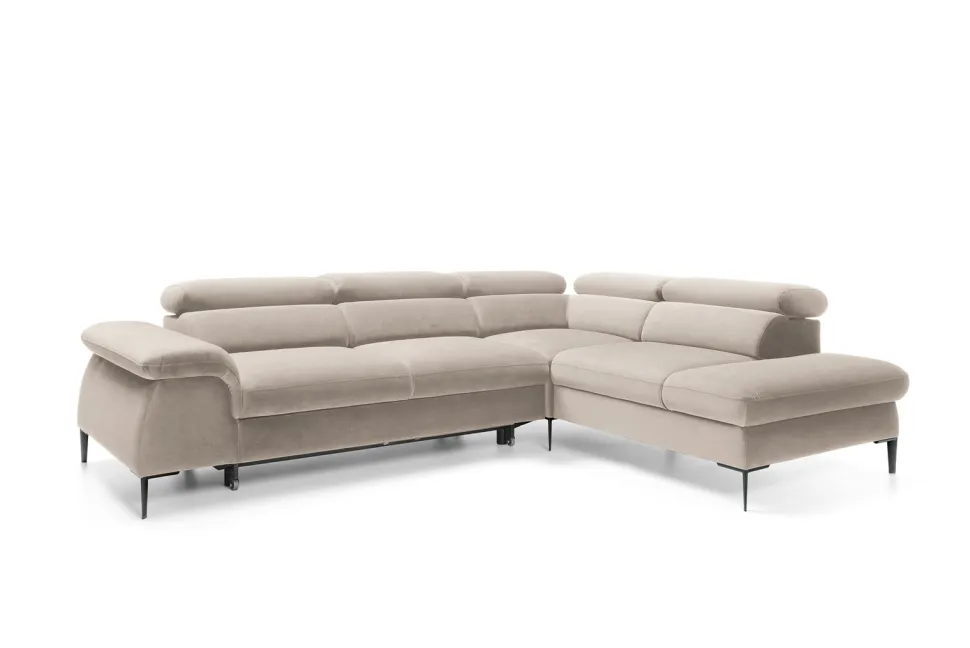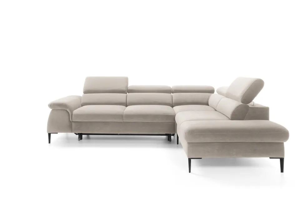 - Narożnik wyposażony jest w ruchome zagłówki oraz miękkie podłokietniki, które zapewniają maksymalny komfort podczas użytkowania.