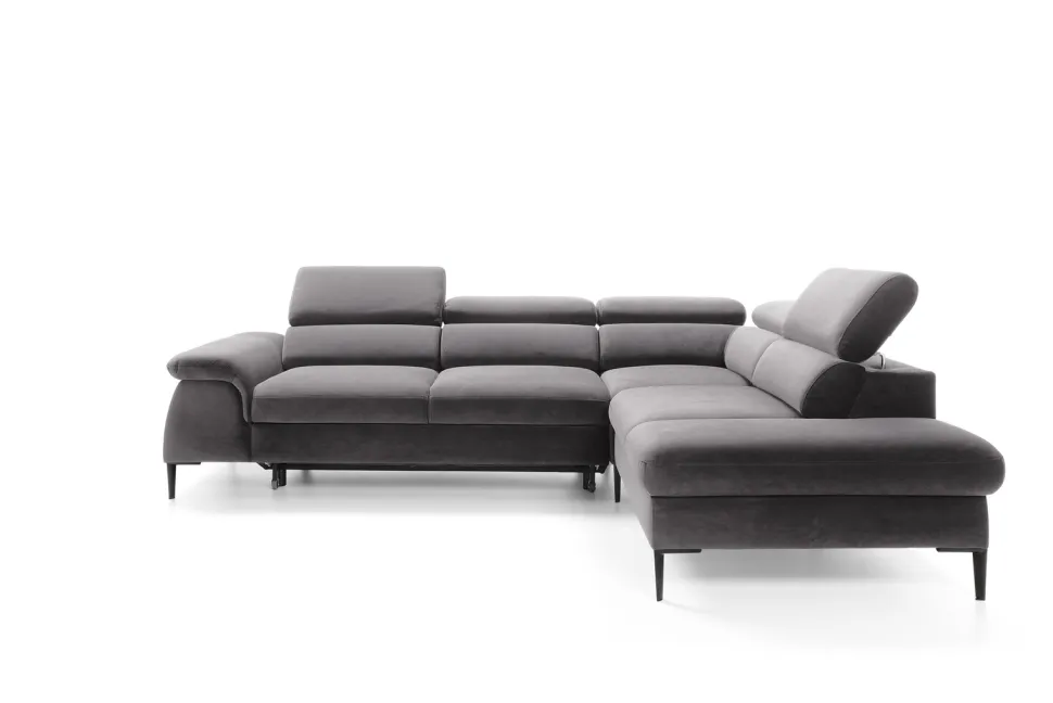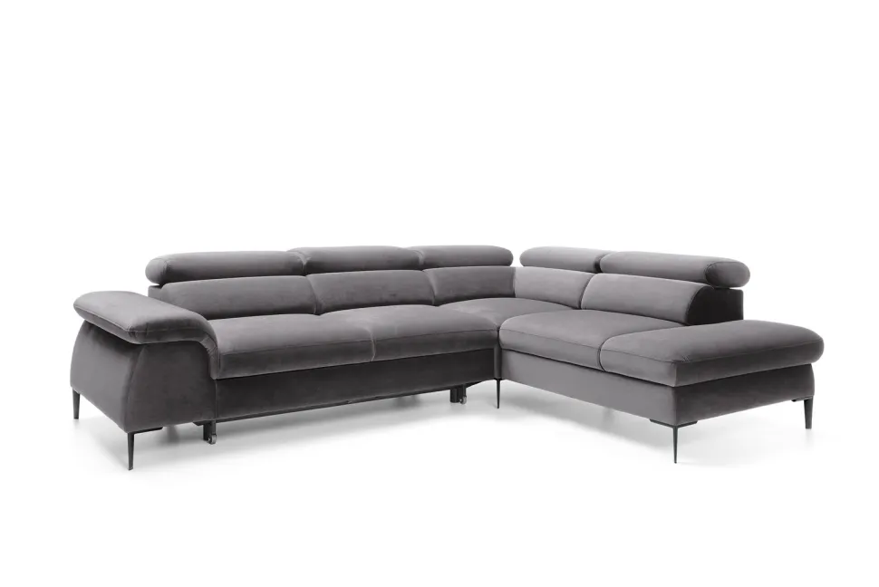 - Narożnik wyposażony jest w ruchome zagłówki oraz miękkie podłokietniki, które zapewniają maksymalny komfort podczas użytkowania.