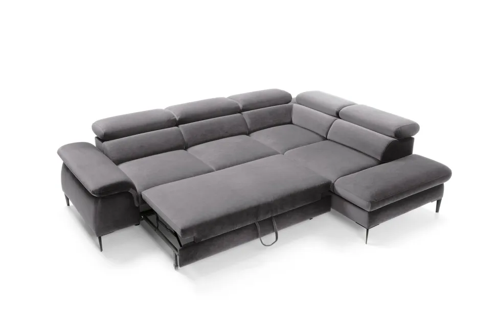 - Narożnik Silvo L prawy szary Vogue 16 to mebel o niezwykłej funkcjonalności. Posiada on funkcję spania oraz pojemnik na pościel, co sprawia, że jest niezwykle praktyczny.