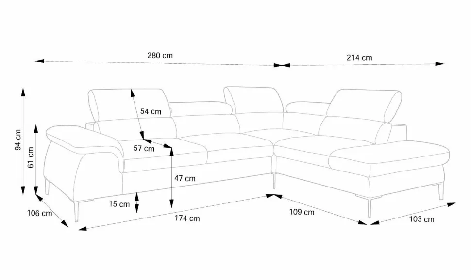 Prezentowany narożnik Silvo od marki Intesi to znakomita propozycja dla osób ceniących sobie komfort i funkcjonalność. Mebel nie tylko umili wieczory spędzane na wspólnym oglądaniu filmów, ale również stanie się praktycznym miejscem do snu dla niespodziewanych gości. Jego głębokość siedziska bez szezlonga wynosi 57 cm, natomiast szezlong ma aż 214 cm. Dzięki temu każdy członek rodziny znajdzie na nim miejsce dla siebie. Wyposażony jest w ruchome zagłówki oraz miękkie podłokietniki, które zapewniają maksymalny komfort podczas użytkowania.