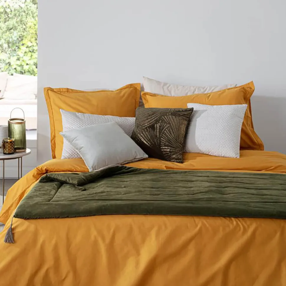 Poliestrowa narzuta w kolorze khaki – idealna do sypialni, salonu czy pokoju młodzieżowego