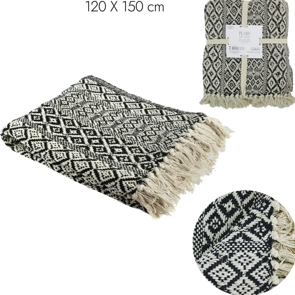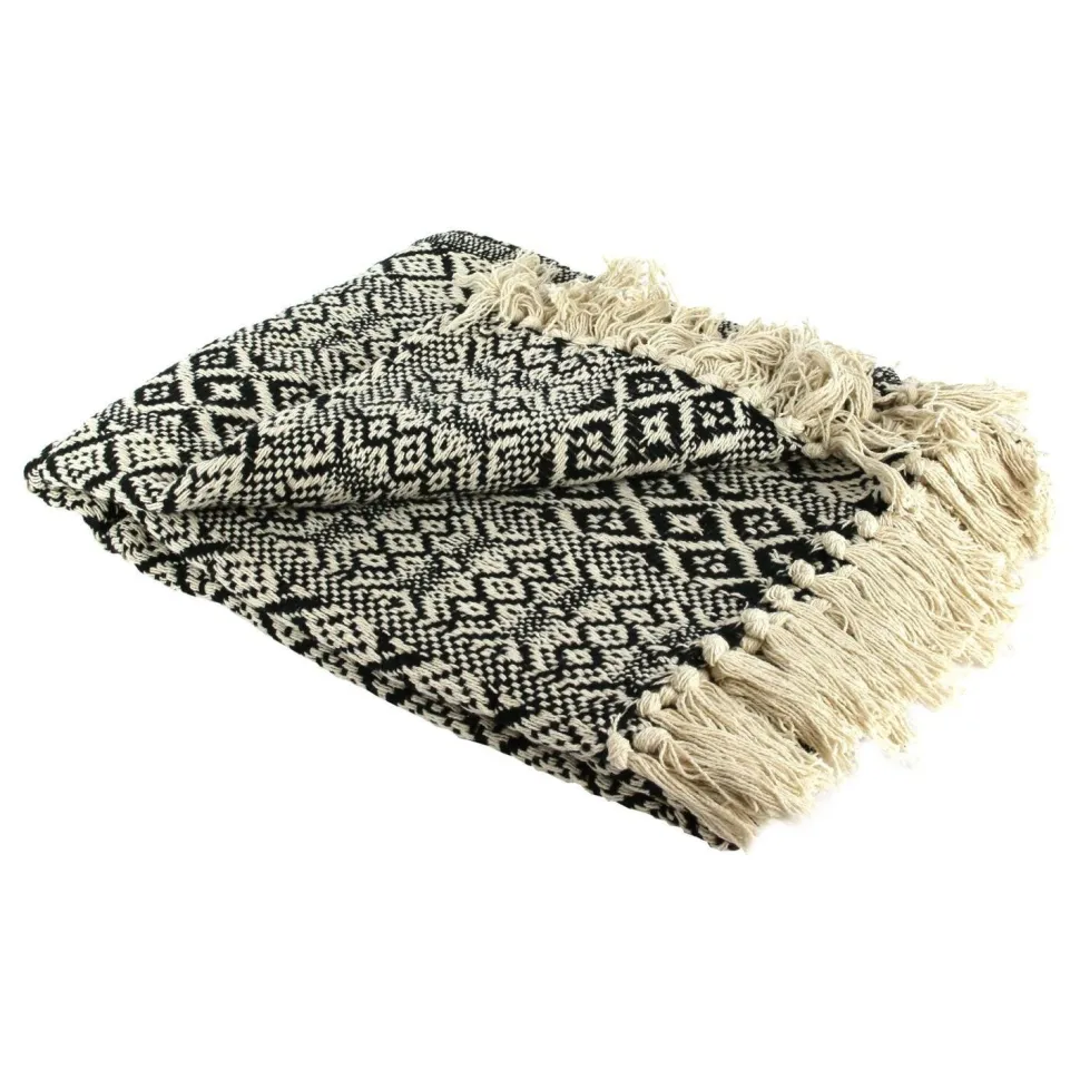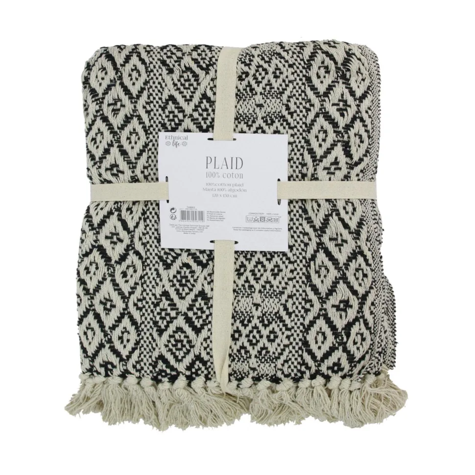 - Narzuta na łóżko Etniczna 120x150cm czarno-biała to produkt wysokiej jakości, wykonany w 100% z bawełny.