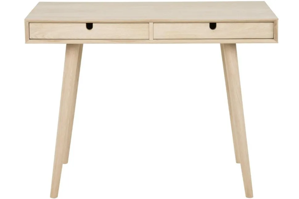 Pokryty dębowym fornirem blat ma wbudowaną praktyczną szufladę na rzeczy do biura. Szuflady mają okrągłe wcięcie zamiast uchwytów. Całość wykończona jest olejem dla zabezpieczenia powierzchni.