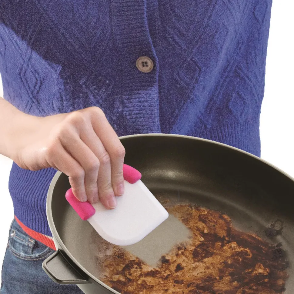 - Łatwe usuwanie przypalonych resztek bez zarysowania powierzchni garnków i patelni.