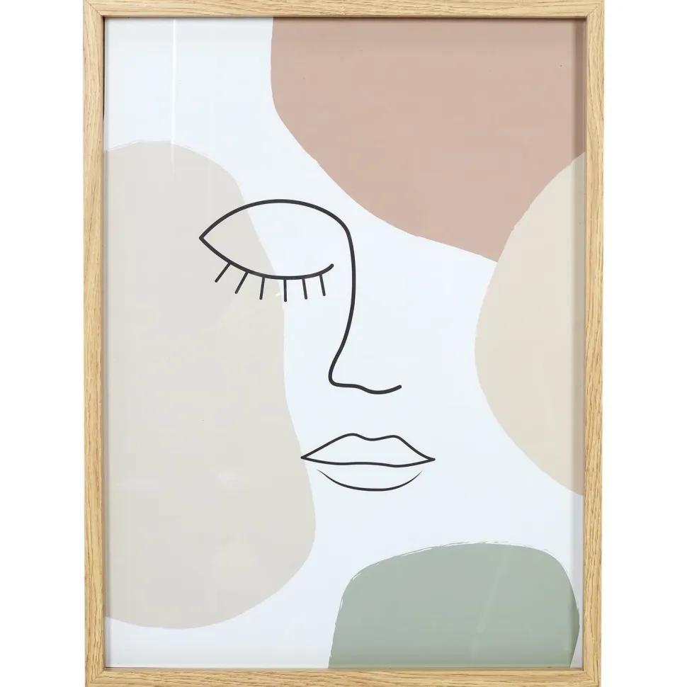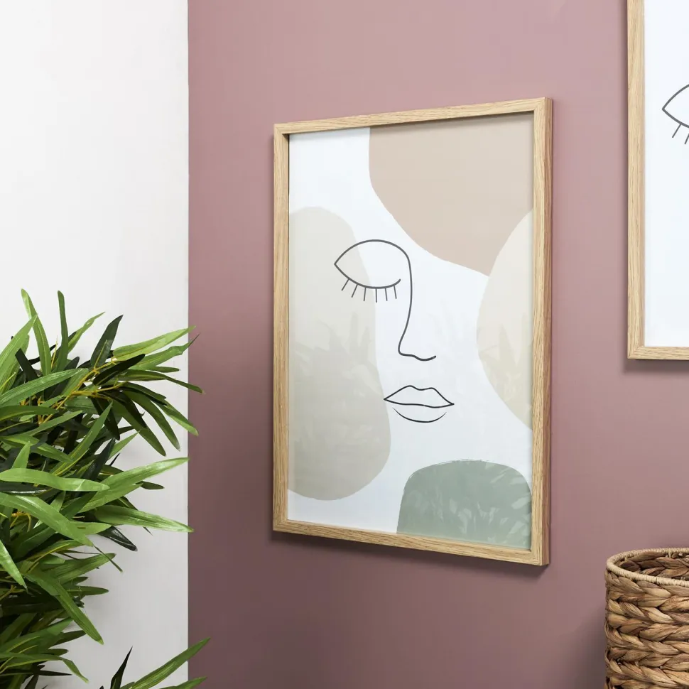 Jeśli lubisz styl minimalistyczny, ale chcesz w gustowny sposób udekorować swoją ścianę, komodę lub konsolkę Obraz na ścianę Arte będzie idealną opcją! Jest to pastelowa kompozycja zamknięta w drewnianej ramie, która będzie nietypowym akcentem na ścianie w salonie lub przedpokoju. Obraz o pastelowych plamach i konturze twarzy wpisze się we wnętrza nowoczesne, boho lub skandi. Papierowe tło obrazu umieszczone zostało na płycie ze sklejki. Posiada także zaczepy na haczyk, dzięki którym z łatwością powiesisz go, gdzie tylko chcesz.