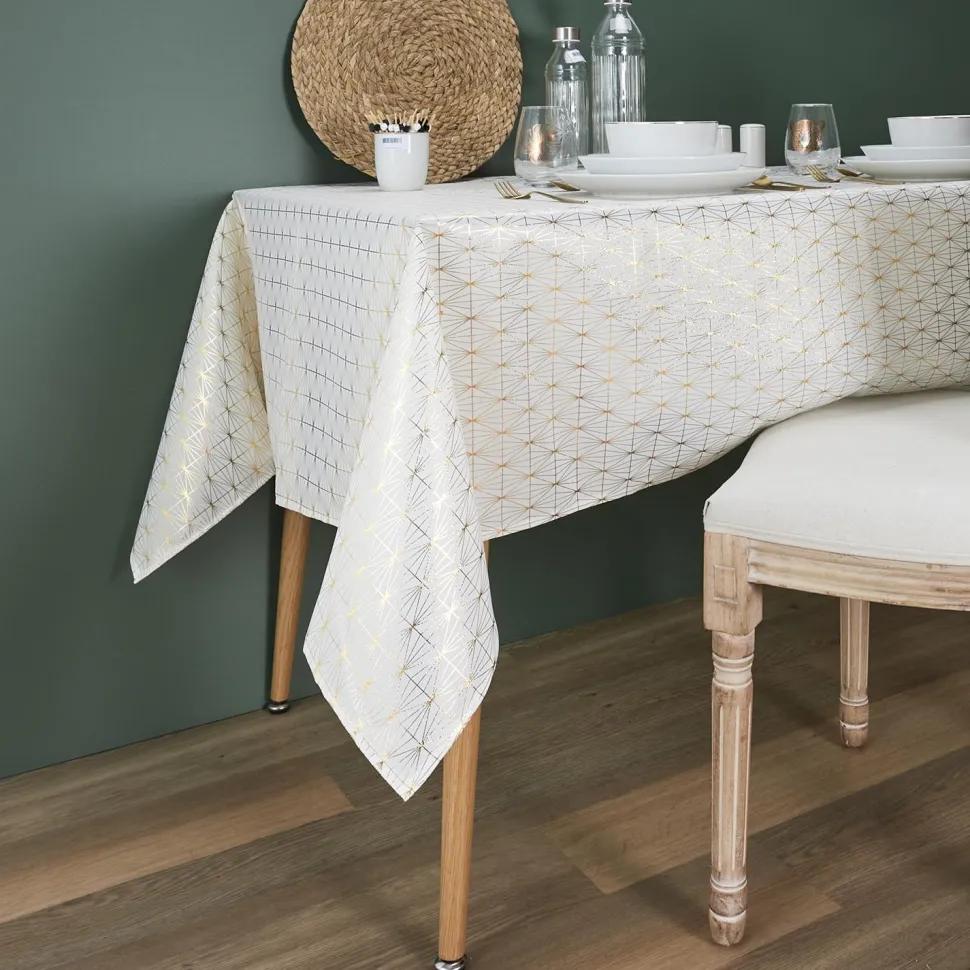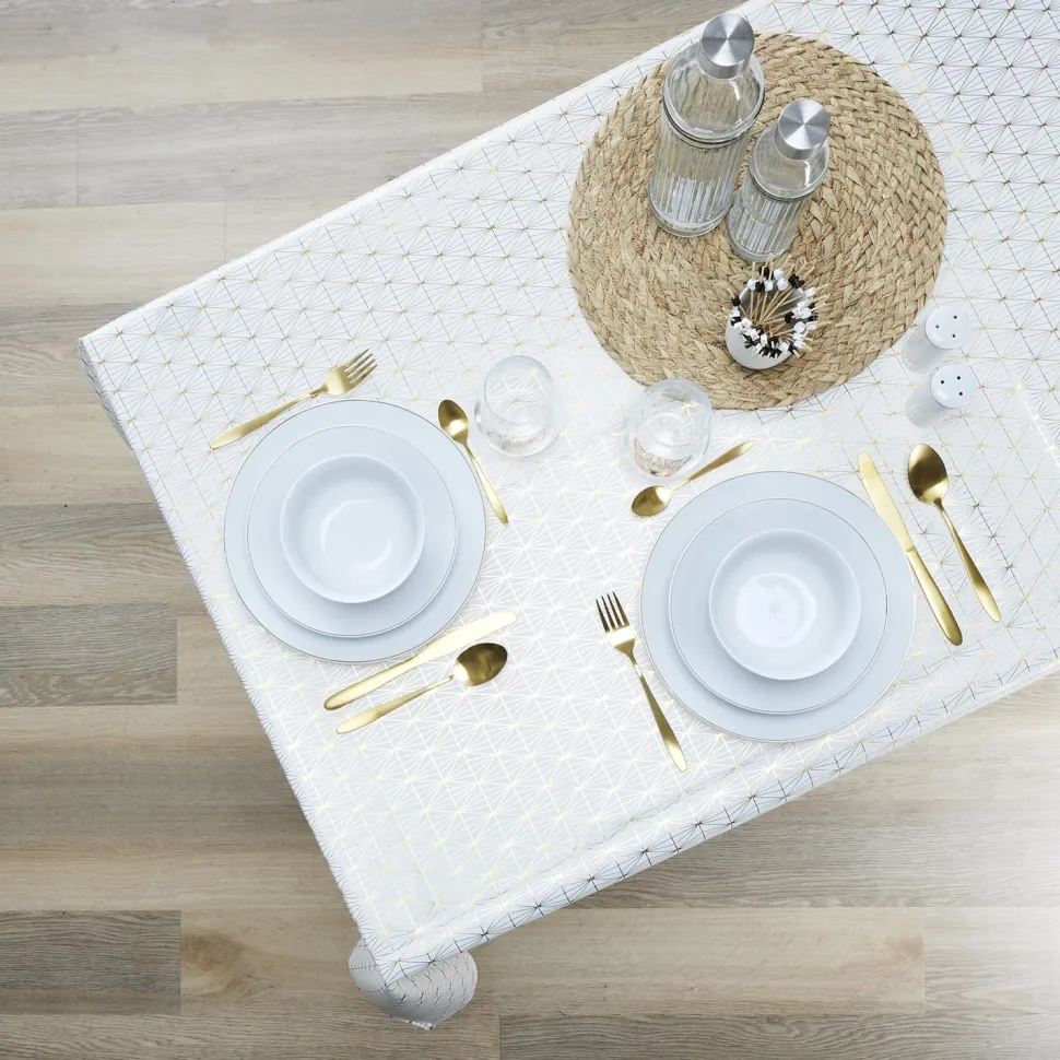 Wykonany z wysokiej jakości poliestru, ten obrus jest nie tylko trwały, ale także łatwy do utrzymania w czystości. Materiał ten jest odporny na plamy i zabrudzenia, dzięki czemu możesz cieszyć się pięknym wyglądem obrusu przez wiele lat. Dodatkowo, poliester jest również łatwy do prasowania, co oznacza, że możesz go szybko i łatwo przygotować na każdą okazję. Obrus Geometric Dore nie tylko dodaje elegancji i stylu Twojemu stołowi, ale także ma wiele praktycznych korzyści. Chroni Twój stół przed uszkodzeniami, plamami i zadrapaniami, co sprawia, że jest idealny nawet do codziennego użytku.