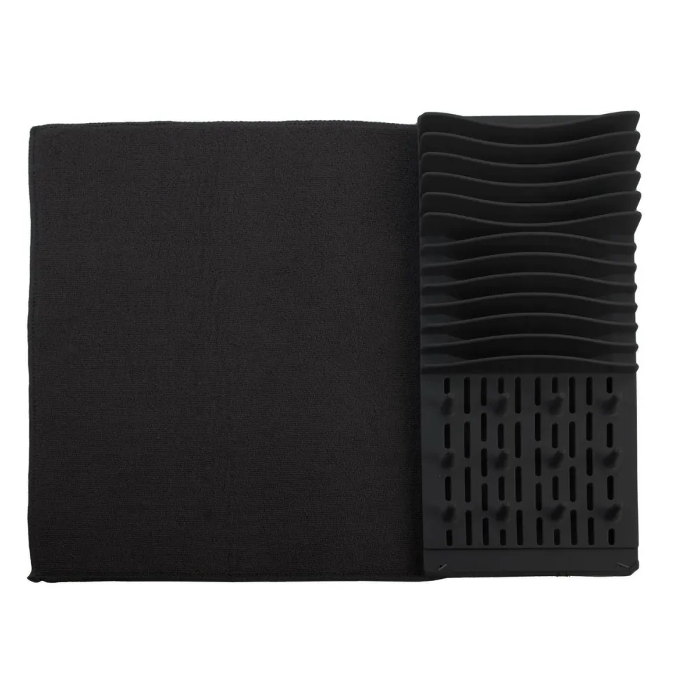 Masz dośćwycierania naczyń i nie masz miejsca do ich suszenia? Teraz nie musisz się już o to martwić dzięki suszarce do naczyń Airy! Ten niesamowity produkt jest tutaj, aby zapewnić wygodę w Twojej kuchni. Suszarka wykonana jest z przewiewnej i chłonnej maty oraz plastikowej podpórki – idealnej do szybkiego i wygodnego suszenia dużej ilości naczyń. Niemusisz już zajmować miejsca w szafkach na naczynia, ponieważ ten ociekacz można łatwo schować. A do tego świetnie wygląda –dostępny jest w dwóch modnych kolorach,czarny będzie pasował do każdejkuchni.