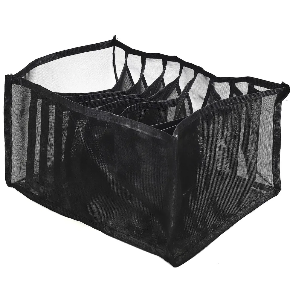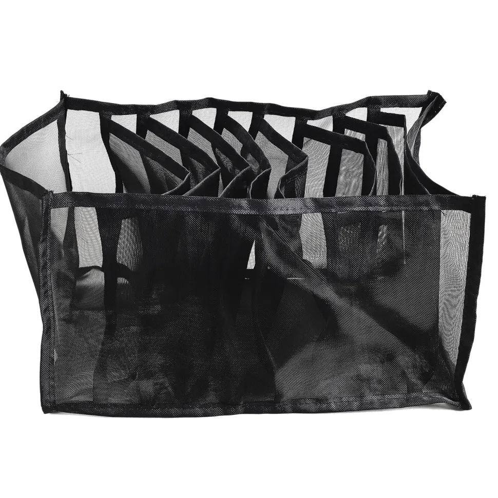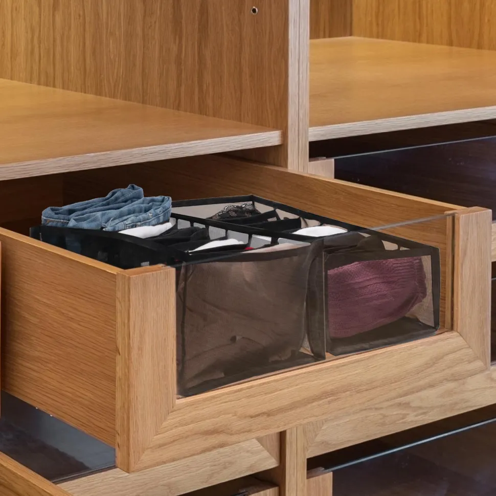Zarządzaj przestrzenią w swojej garderobie z łatwością dzięki naszemu organizerowi do szuflady na odzież w kolorze czarnym. Ten praktyczny organizer, wyposażony w 9 komór, pozwoli Ci na uporządkowanie i efektywne wykorzystanie miejsca w szufladach. Dzięki niemu, Twoja bielizna będzie zawsze na swoim miejscu, łatwo dostępna i gotowa do użycia. Nie musisz już szukać ulubionych skarpetek czy biustonosza – wszystko jest w zasięgu ręki.