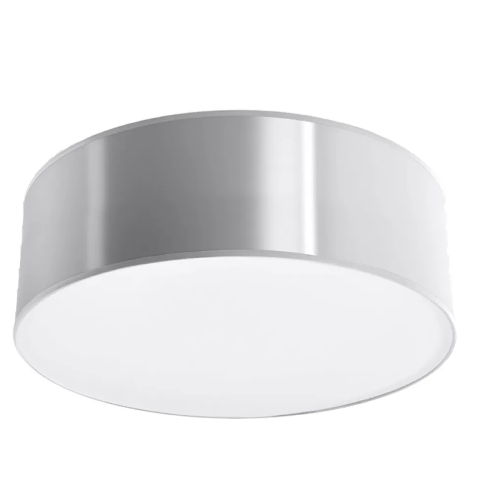 Okrągły plafon Arena dostępny jest w wielu konfiguracjach. Do wyboru oferujemy Ci szary, biały i czarny metalowy klosz. Jego kształt zbudowany jest cylindryczny, o czterech różnych średnicach: 25, 35, 45 i 55 cm. Mleczne tworzywo rozprowadza światło żarówki równomiernie po przestrzeni, zapewniając przyjemny dla oka efekt. Gwint E27 jest uniwersalnym wejściem dla żarówek tradycyjnych, LED czy energooszczędnych. Prosta forma to również duża łatwość czyszczenia.