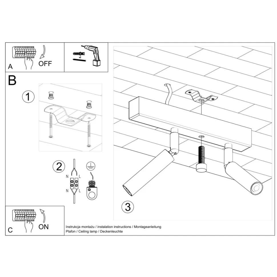 Plafon Eyetech dostępny jest w bardzo charakterystycznych dla stylu loftowego kolorach: bieli i czerni. Podłużna listwa dostępna jest w opcji zawierającej po 2,3,4 lub 6 lampek. Dzięki temu łatwo będzie dopasować produkt do Twojej wizji i zapotrzebowania na intensywność oświetlenia. Prosty projekt lampy oznacza również łatwość czyszczenia i neutralne dopasowanie do przestrzeni.
