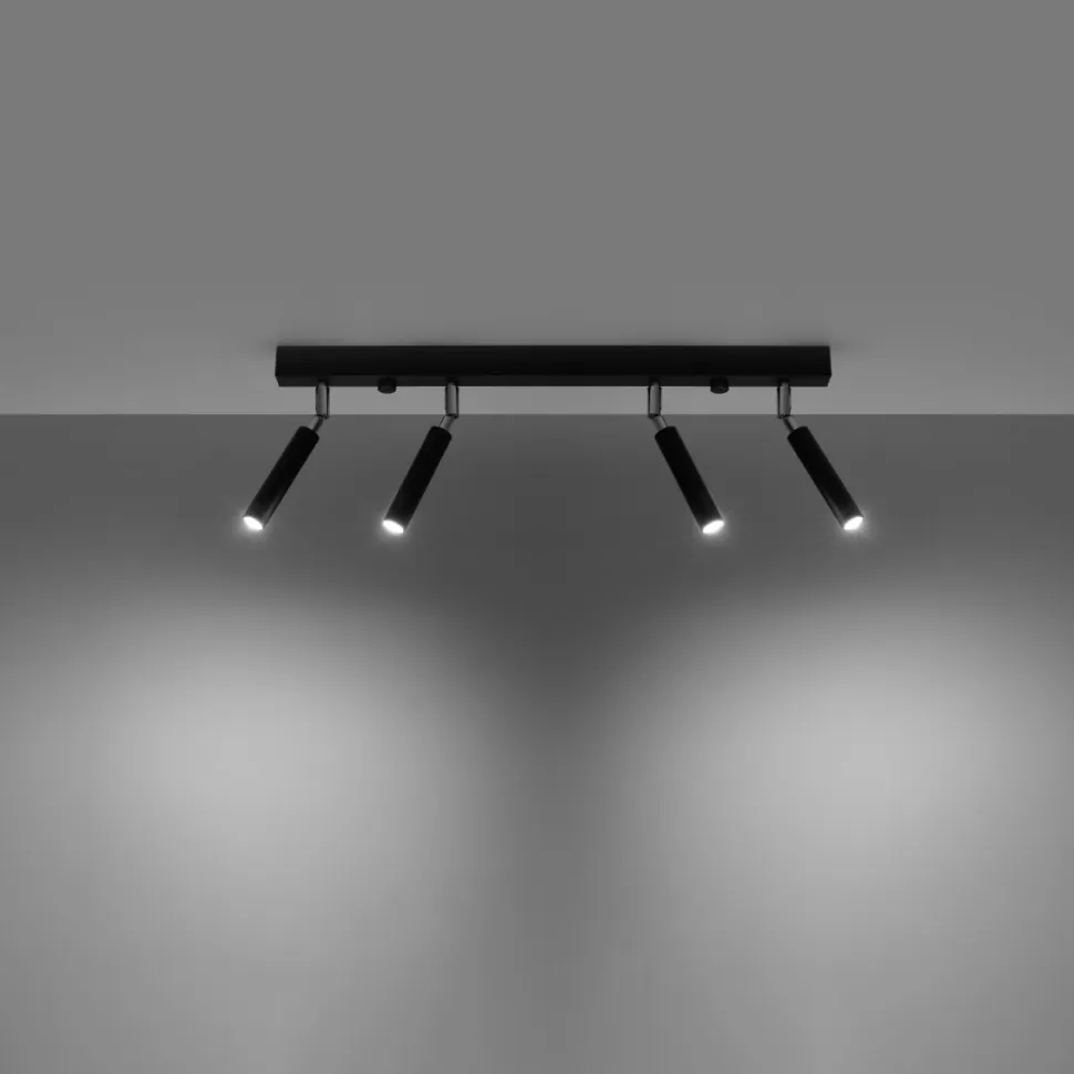 Plafon Eyetech dostępny jest w bardzocharakterystycznych dla stylu loftowego kolorach: bieli i czerni. Podłużna listwa dostępna jest w opcji zawierającej po 2,3,4 lub 6 lampek. Dzięki temu łatwo będzie dopasować produkt do Twojej wizji i zapotrzebowania na intensywność oświetlenia. Prosty projekt lampy oznacza równieżłatwość czyszczeniai neutralne dopasowanie do przestrzeni.