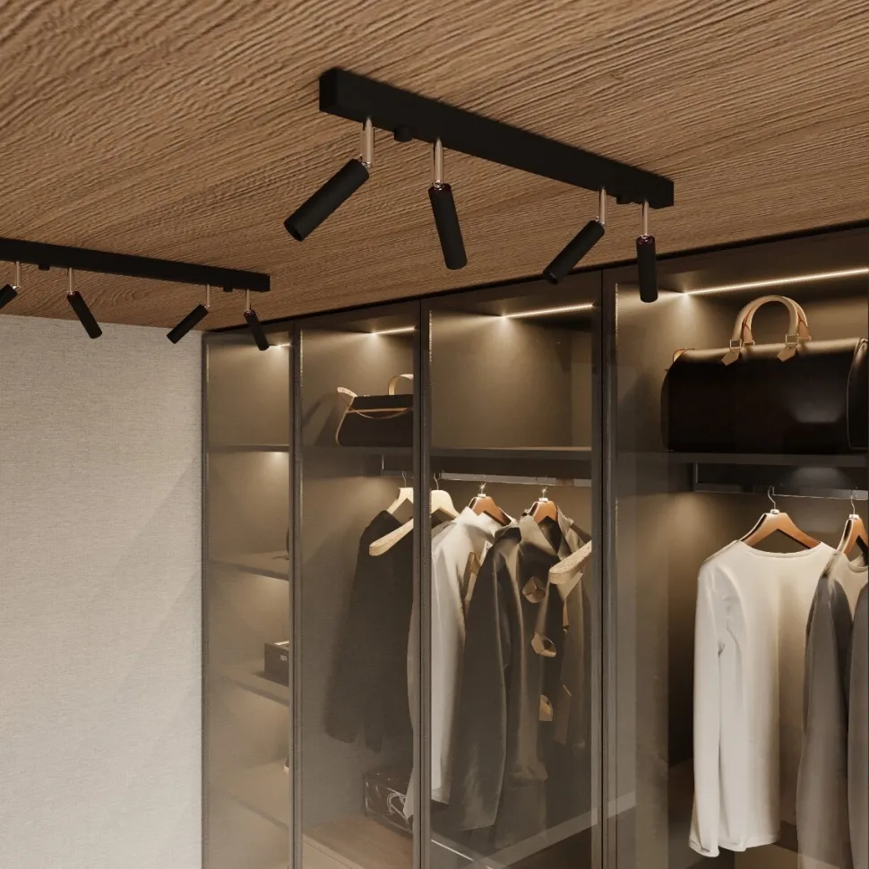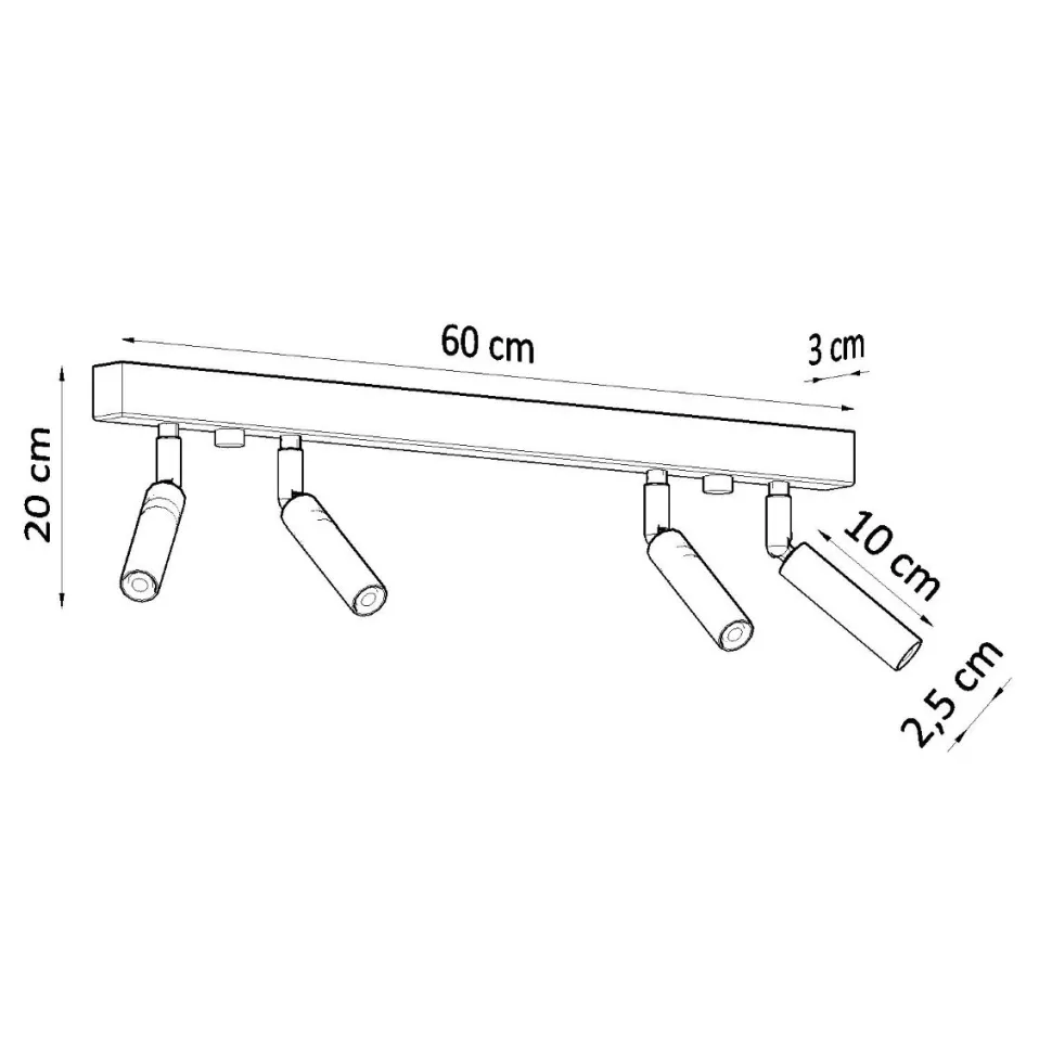 Plafon Eyetech to produkt o neutralnym charakterze. Jegoindustrialna i loftowa formapodkreśla surowość wnętrza lub wtapia się w nie zupełnie. Plafon zrobiony jest w formie listwy zruchomymi lampkami. Każda z lampek zrobiona jest w cylindrycznym kształcie. Dzięki możliwości zmieniania kierunku strumienia światła, lampa staje się bardzo funkcjonalna ioświetlić można dowolny kąt przestrzeni. Pasować będzie zarówno do kuchni i przedpokoju, ale również do kawiarni, restauracji czy sklepu.