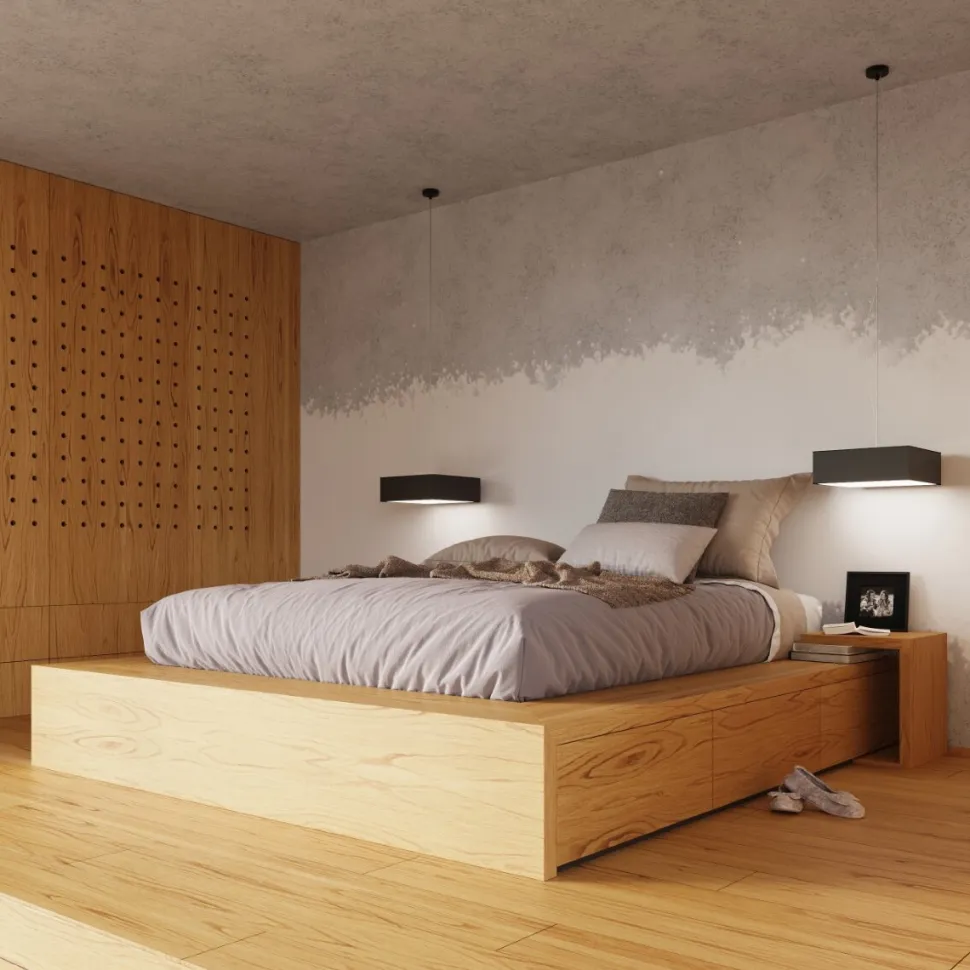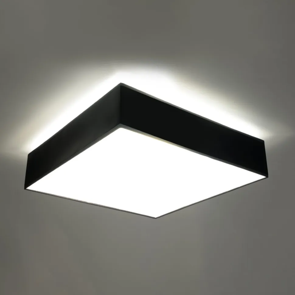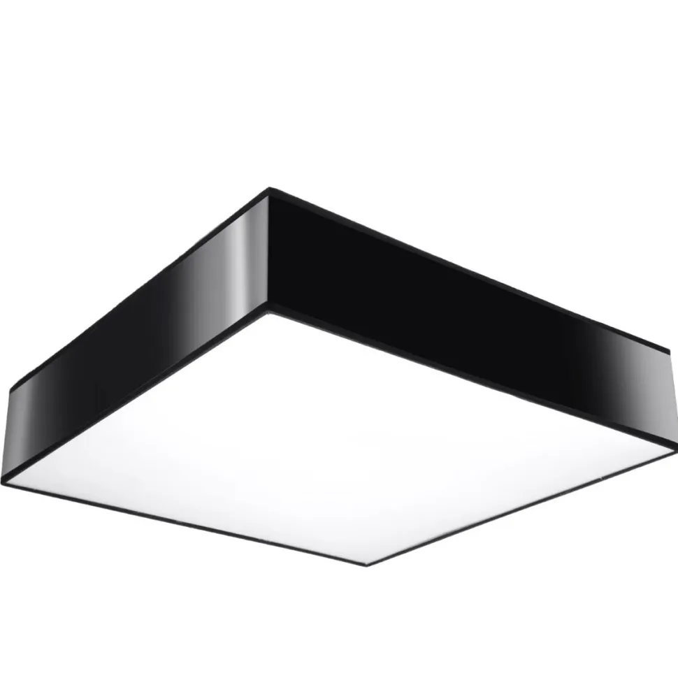 Plafon zaprojektowany jest w prostopadłościenną formę, opartą na kształcie kwadratu. Metalowa obudowa dostępna jest w trzech kolorach: białym, czarnym i szarym. Możliwy jest również wybór wielkości spośród szerokości 25, 35, 45 i 55cm.Gwint E27 umieszczony w środku lampy jest bardzo uniwersalnyi można wkręcić do niego żarówki tradycyjne, LED, halogenowe czy energooszczędne. Lampa zaprojektowana jest także w taki sposób, abymontaż był niezwykle prosty i szybki.