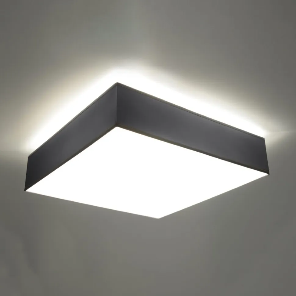 Plafon zaprojektowany jest w prostopadłościenną formę, opartą na kształcie kwadratu. Metalowa obudowa dostępna jest w trzech kolorach: białym, czarnym i szarym. Możliwy jest również wybór wielkości spośród szerokości 25, 35, 45 i 55cm. Gwint E27 umieszczony w środku lampy jest bardzo uniwersalny i można wkręcić do niego żarówki tradycyjne, LED, halogenowe czy energooszczędne. Lampa zaprojektowana jest także w taki sposób, aby montaż był niezwykle prosty i szybki.
