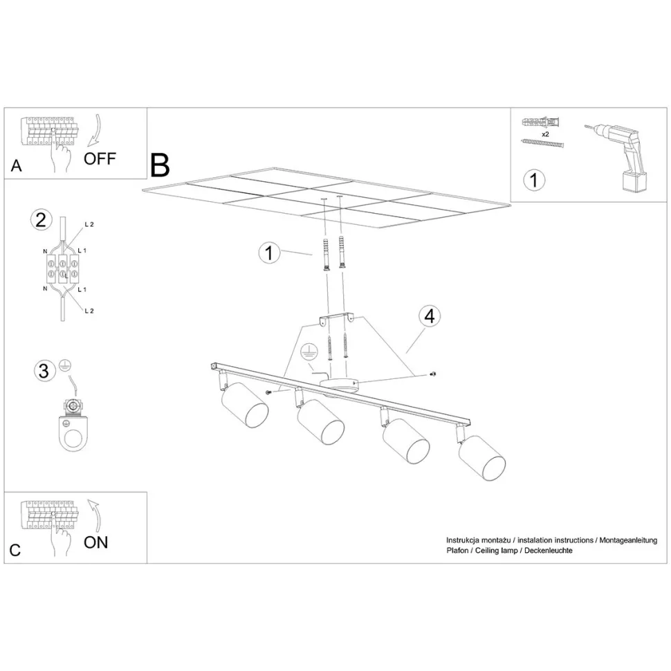 Nowoczesna lampa Plafon – 4 źródła światła
