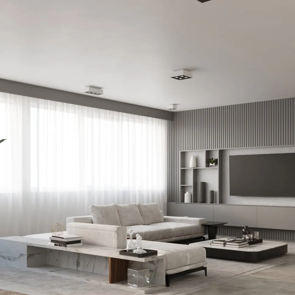 Plafon Mono to bardzo prosty w budowie przedmiot, który pasował będzie do każdego stylu wykończenia. Jego prostopadłościenny i geometryczny kształt jest bardzominimalistyczny i neutralny w wyglądzie. W środku wbudowane są lampki (możliwość wyboru między jedną, dwoma, trzema i czterema), którenastrojowo dodadzą światła aranżacji. Dzięki prostemu designowi plafon pasował będzie zarówno do stylu nowoczesnego, klasycznego, skandynawskiego czy też industrialnego.