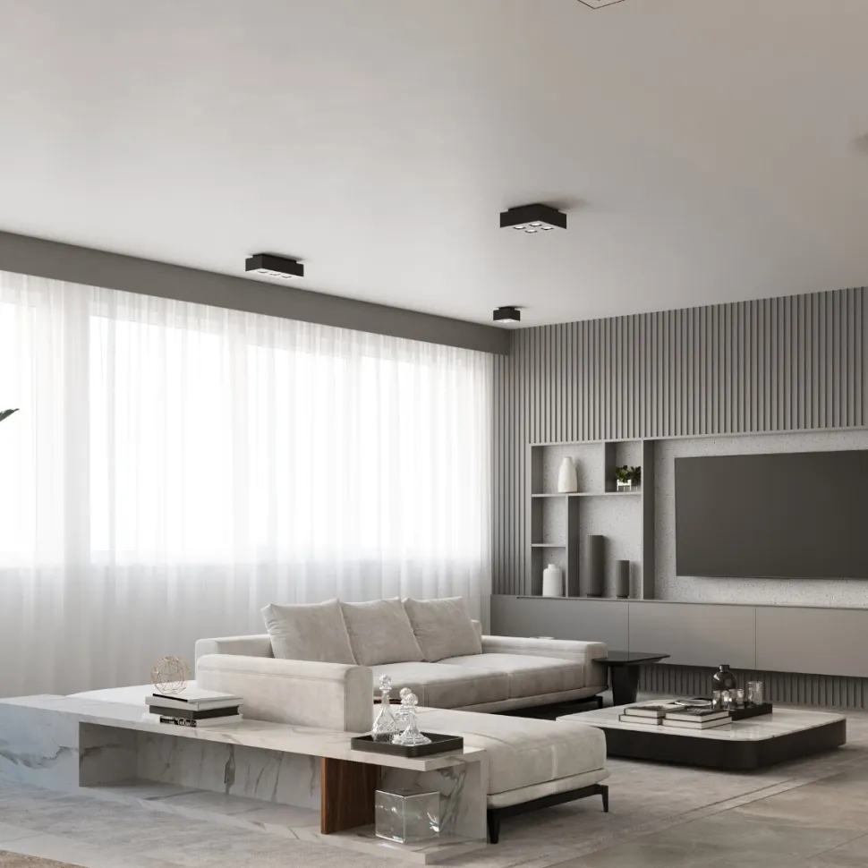Plafon Mono to bardzo prosty w budowie przedmiot, który pasował będzie do każdego stylu wykończenia. Jego prostopadłościenny i geometryczny kształt jest bardzo minimalistyczny i neutralny w wyglądzie. W środku wbudowane są lampki (możliwość wyboru między jedną, dwoma, trzema i czterema), które nastrojowo dodadzą światła aranżacji. Dzięki prostemu designowi plafon pasował będzie zarówno do stylu nowoczesnego, klasycznego, skandynawskiego czy też industrialnego.