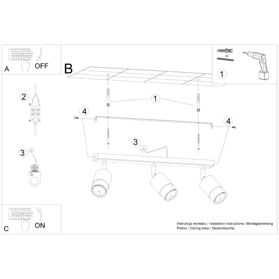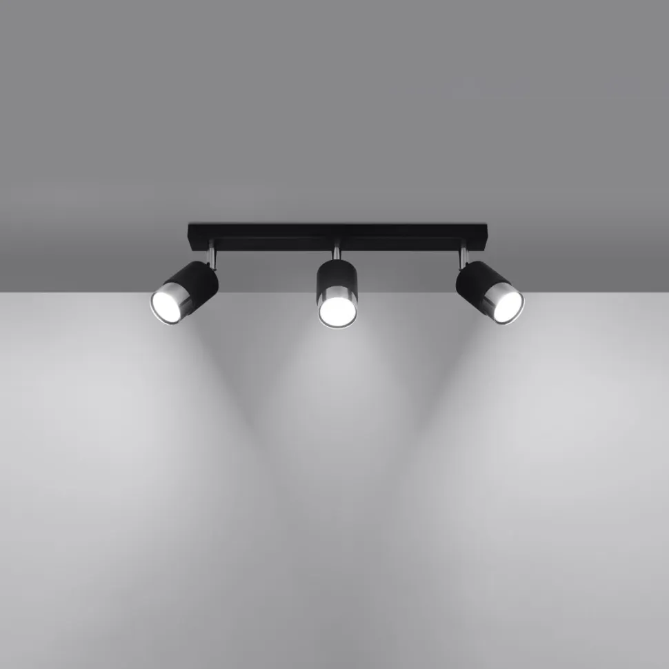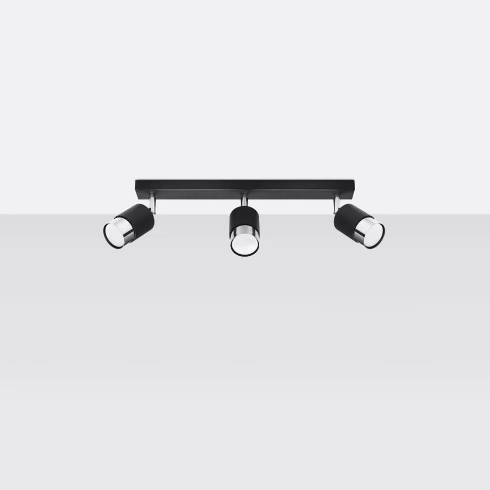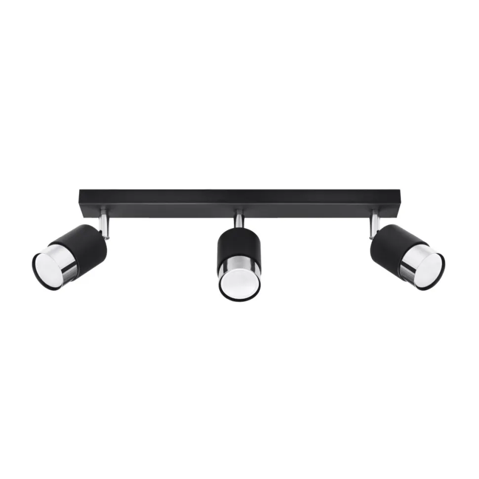 Plafon Nero to produkt bardzo wyraźnym loftowym stylu. Jegoindustrialna i ażurowa formapochodzi od prostego projektu opartego na kształcie listwy z cylindrycznymi lampkami.Każde ze źródeł światła jest ruchome, przez co oświetlić można zarówno całość przestrzeni, jak też jeden z jej fragmentów tworząc nastrojowy klimat.Nero to czarna, stalowa lampa z dodatkami detali w dwóch odcieniach metali: chromu i złota. Pasować będzie zarówno do przedpokoju, kuchni czy sypialni.