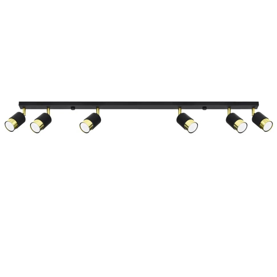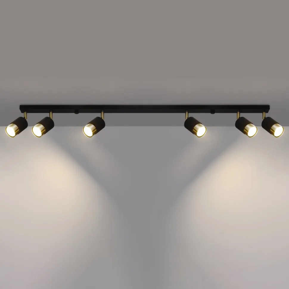 Plafon Nero to produkt bardzo wyraźnym loftowym stylu. Jego industrialna i ażurowa forma pochodzi od prostego projektu opartego na kształcie listwy z cylindrycznymi lampkami. Każde ze źródeł światła jest ruchome, przez co oświetlić można zarówno całość przestrzeni, jak też jeden z jej fragmentów tworząc nastrojowy klimat. Nero to czarna, stalowa lampa z dodatkami detali w dwóch odcieniach metali: chromu i złota. Pasować będzie zarówno do przedpokoju, kuchni czy sypialni.