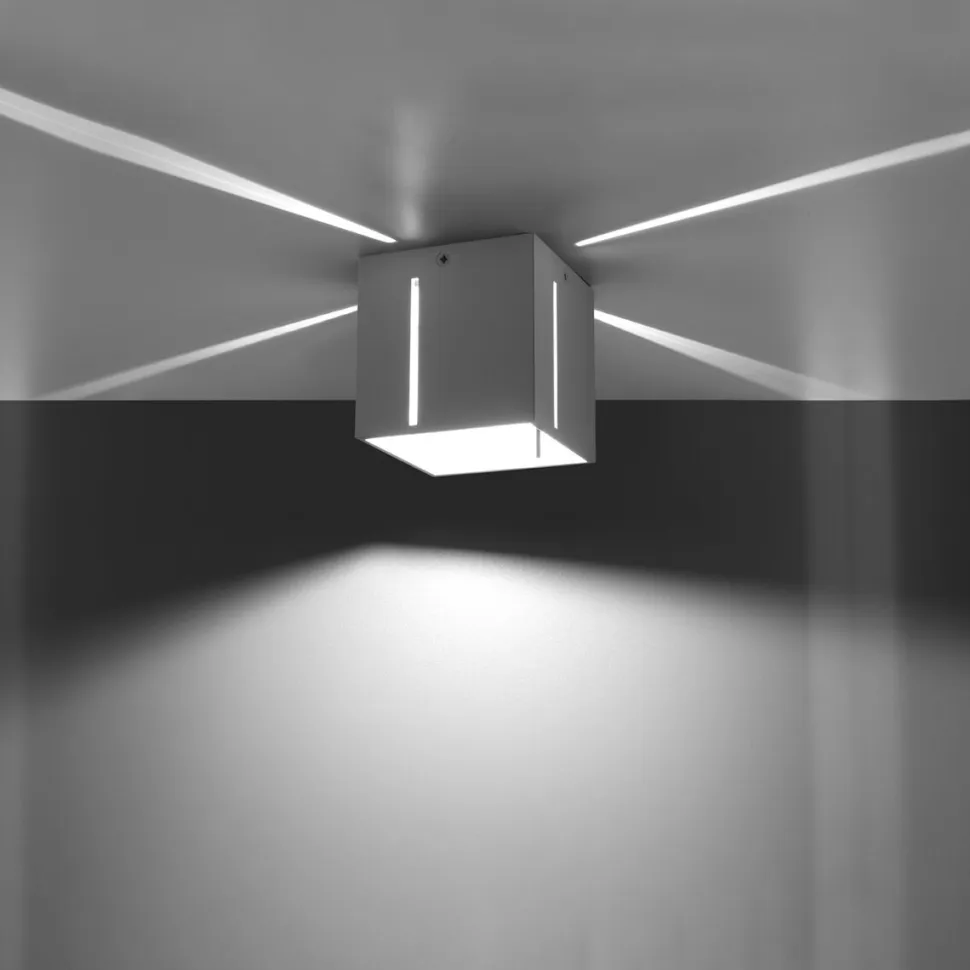 Seria lamp typu Pixar stanowi zaskakujące połączenie wizualne, w którym klasyka i prostota łączy się z elementami futurystycznymi. Forma w kształcie kubika, uzupełniona w drobne ażury wpasuje się do aranżacji każdego wnętrza, będąc przy tym jego nowoczesną ozdobą. Oprawa z aluminium grubości 4 mm posiada lekko mieniące się wykończenie i dostępna jest w stonowanych kolorach do wyboru. Przez zabieg pozbawienia kinkietu podstawy dolnej i dodanie ażurów, światło przenika przez otwory, tworząc ciekawe efekty świetlne. Plafon Pixar przez swój jednocześnie prosty jak i wyjątkowy wygląd wzbogaci i rozświetli niejedną łazienkę, korytarz czy biuro.